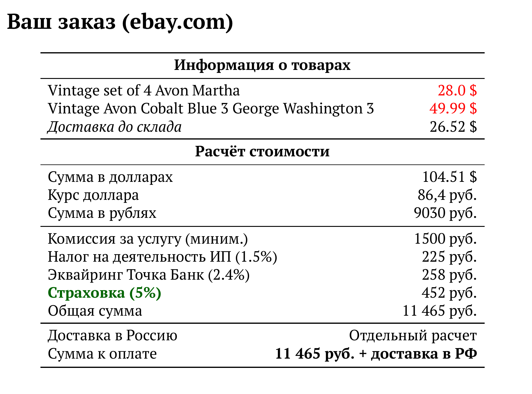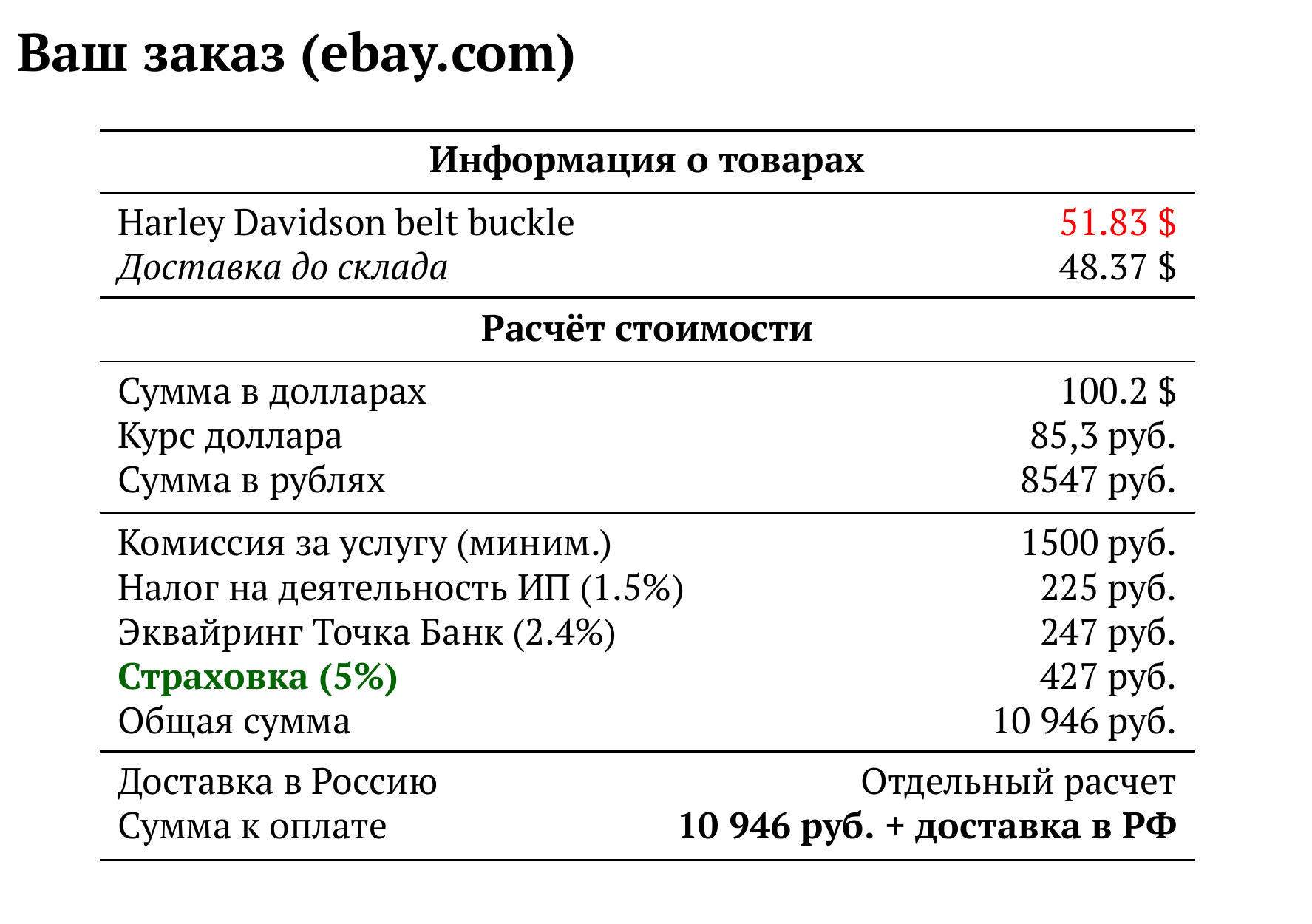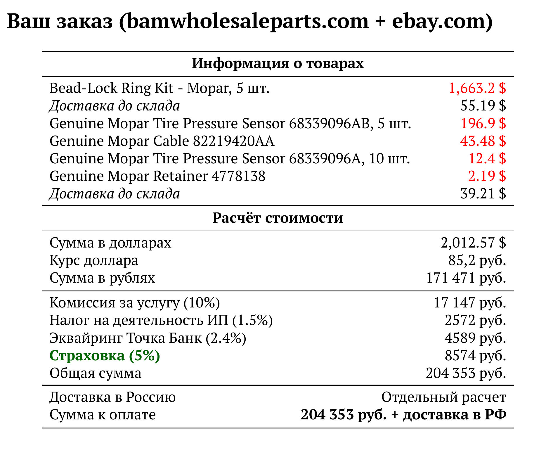 Расчет для bamwholesaleparts.com + ebay.com — 204 353 руб.