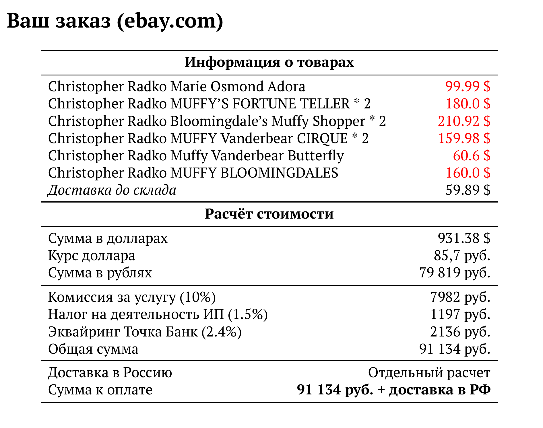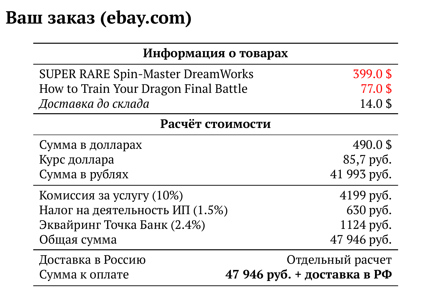 Расчет для ebay.com — Продавец №3 — 12 924 руб.