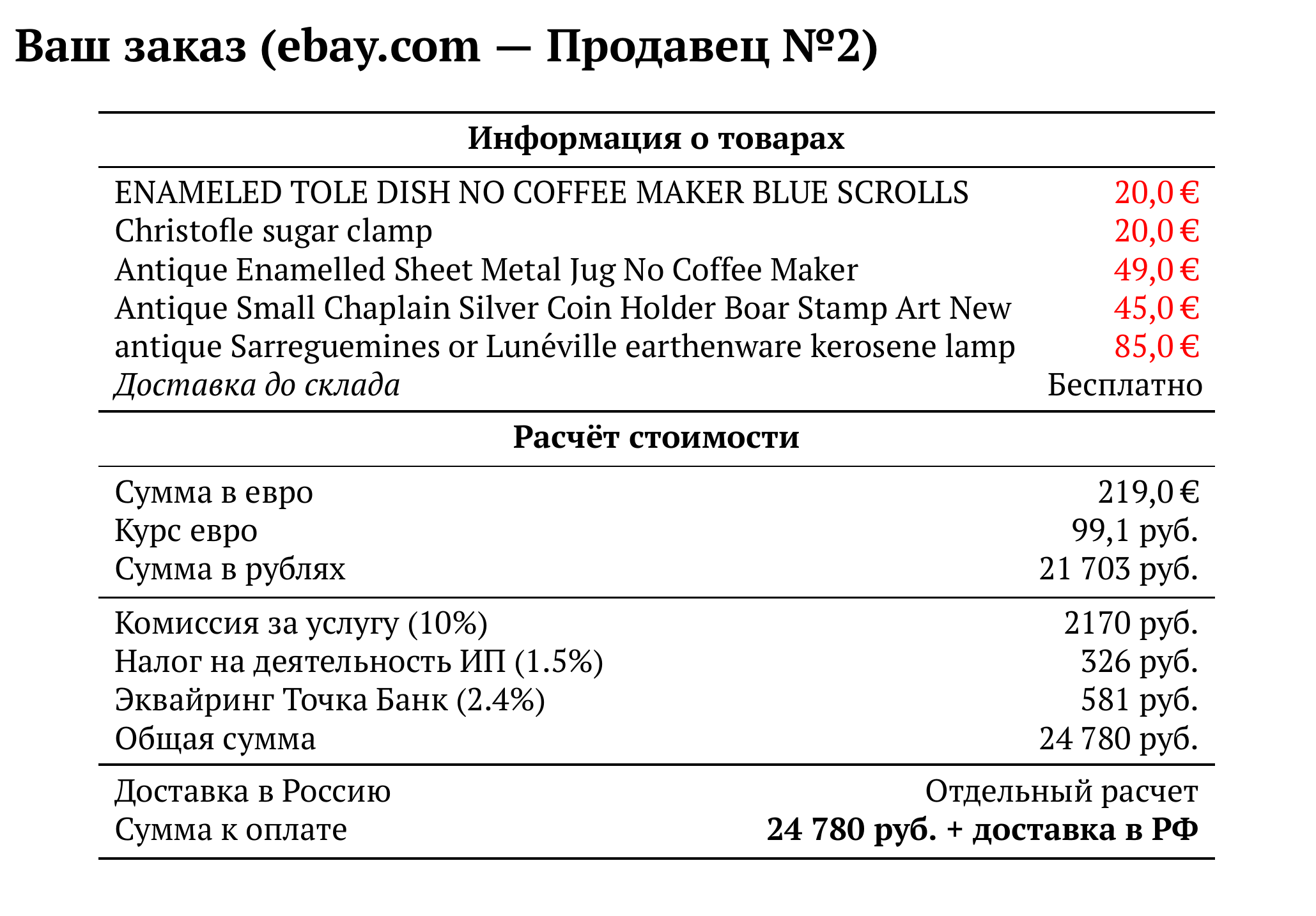 Расчет для ebay.com — Продавец №2 — 24 780 руб.