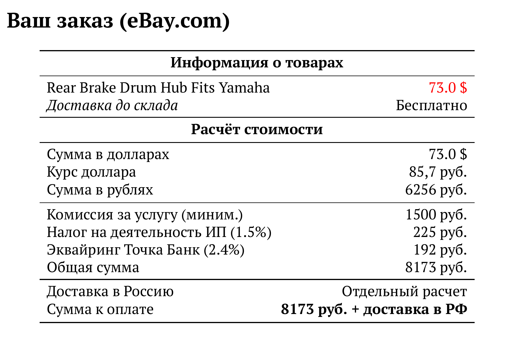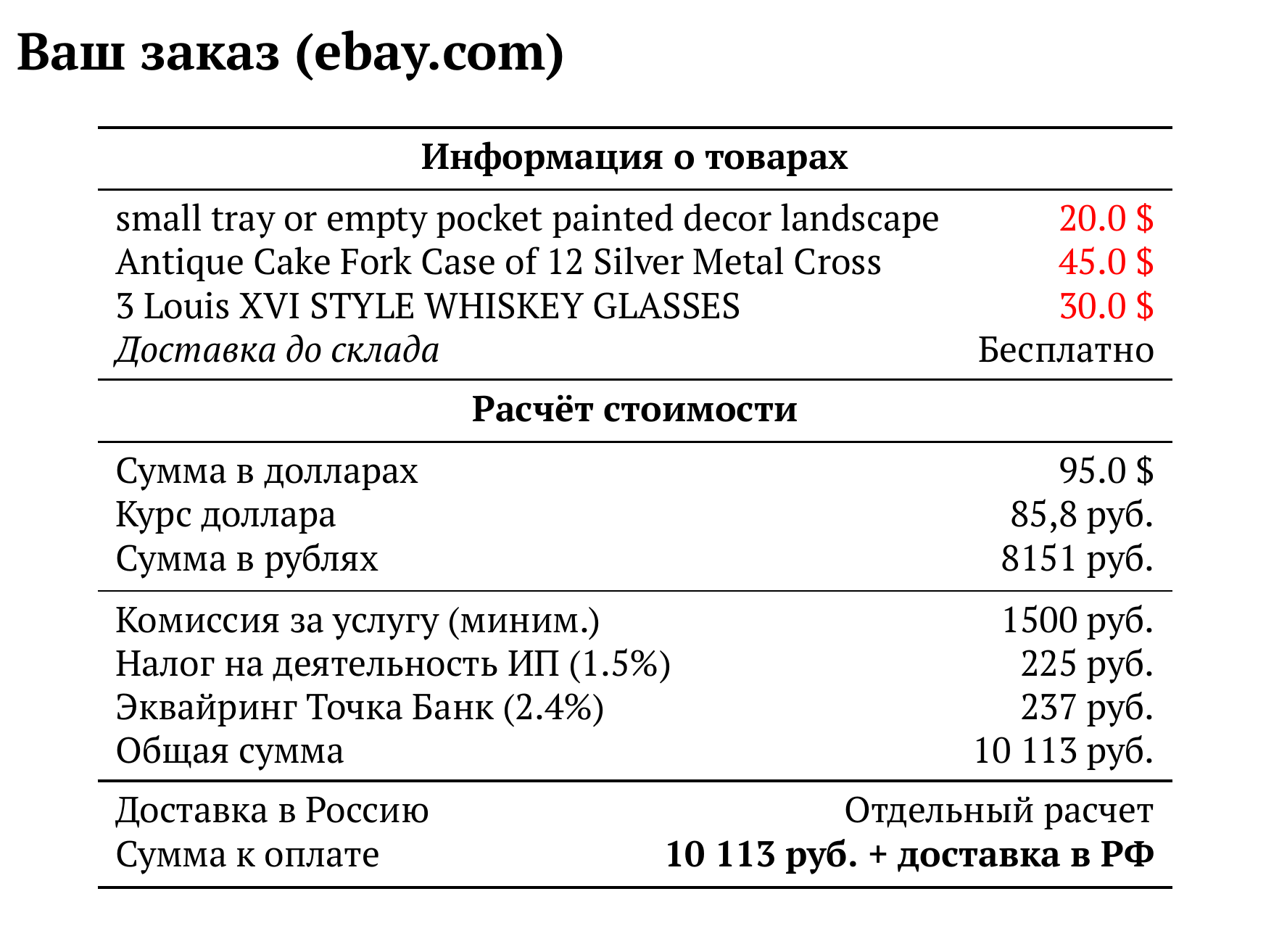 Расчет для ebay.com — Продавец №3 — 11 406 руб.