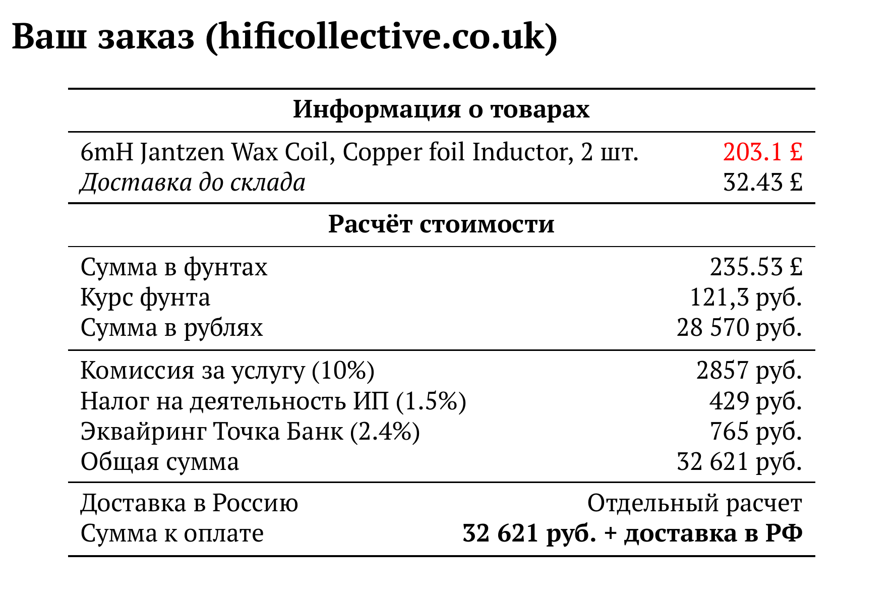 Расчет для hificollective.co.uk — 32 621 руб.