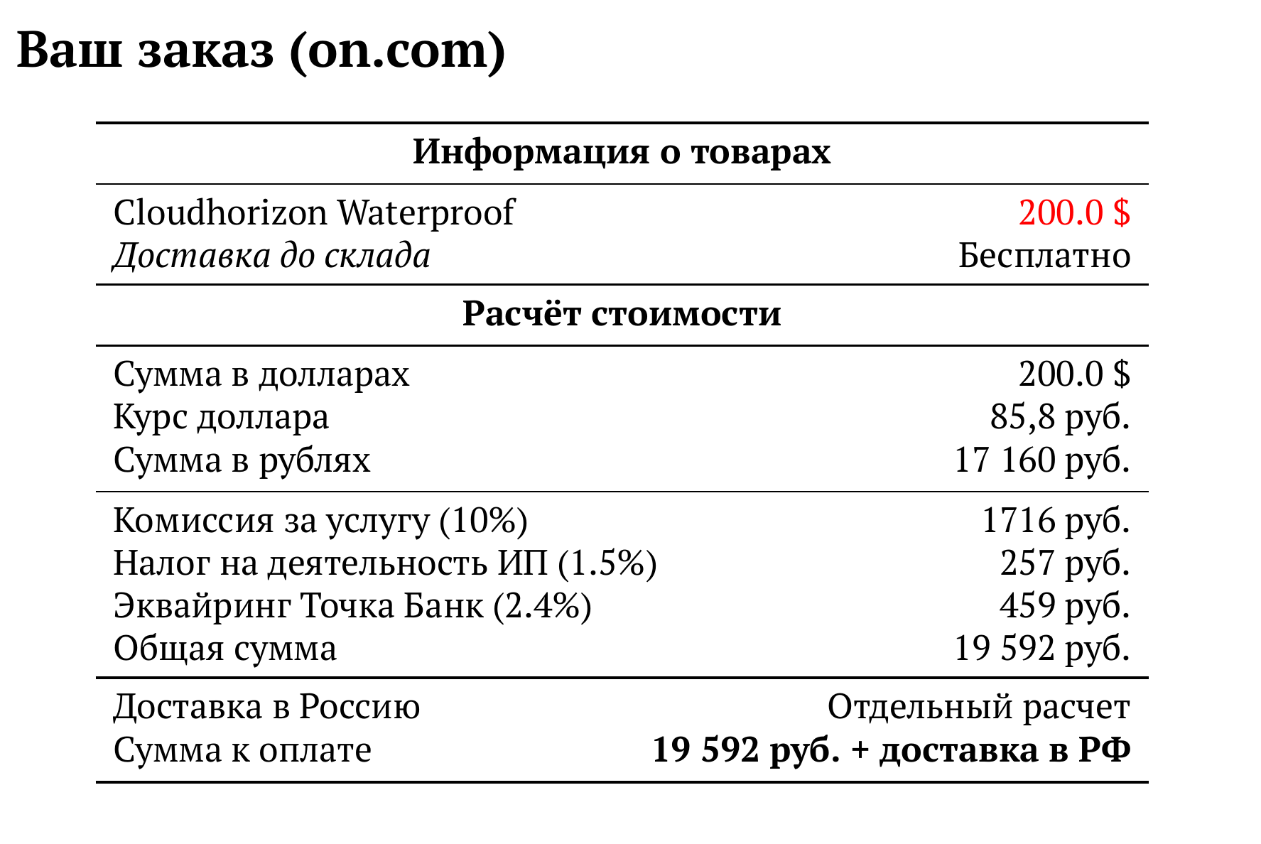 Расчет для on.com — 19 592 руб.