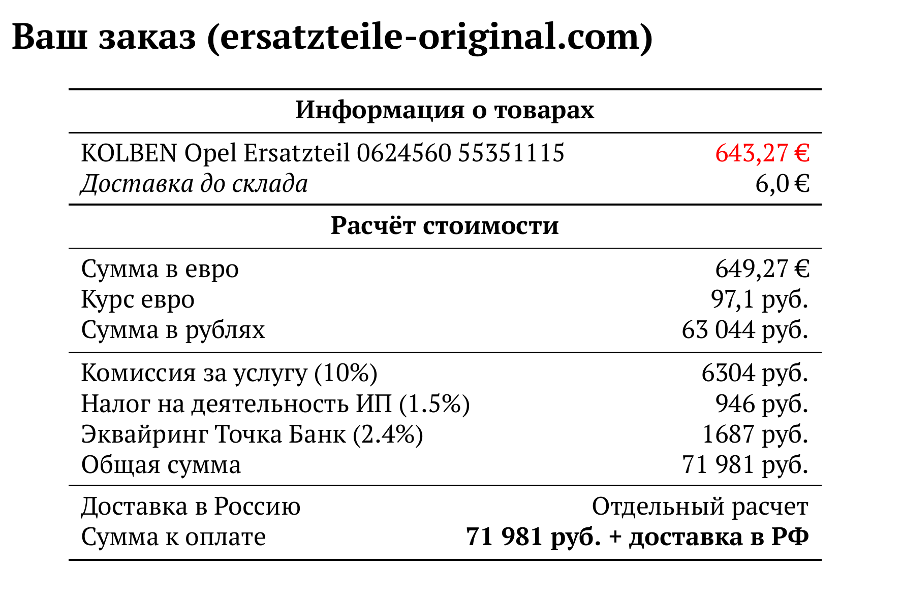 Расчет для ersatzteile-original.com — 71 981 руб.