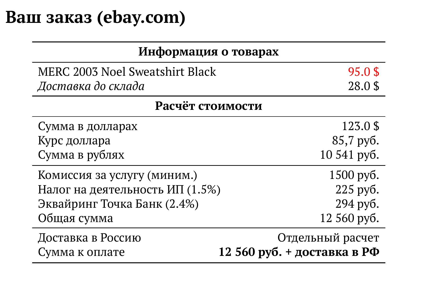 Расчет для ebay.com — 12 560 руб.
