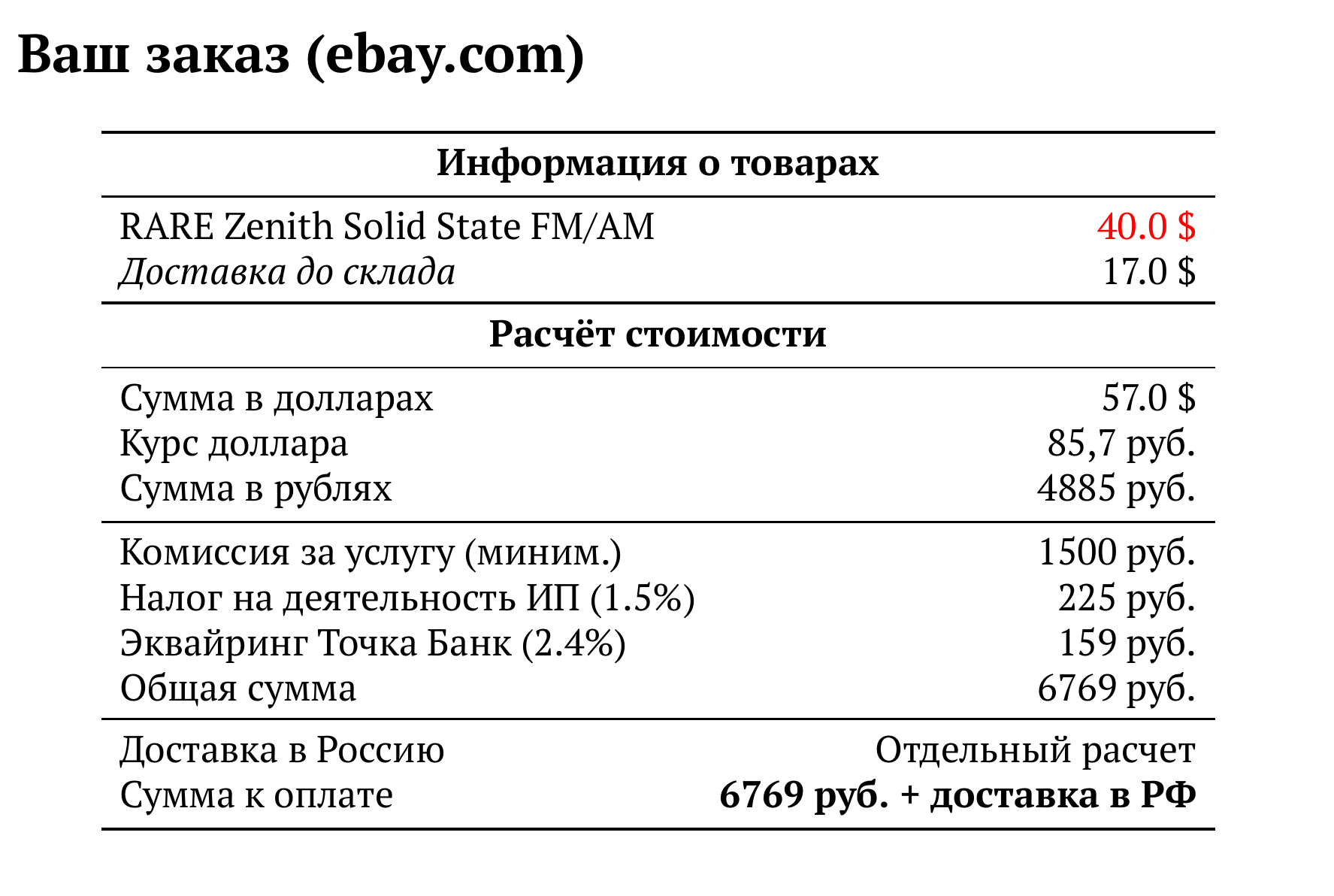 Расчет для ebay.com — 6769 руб.