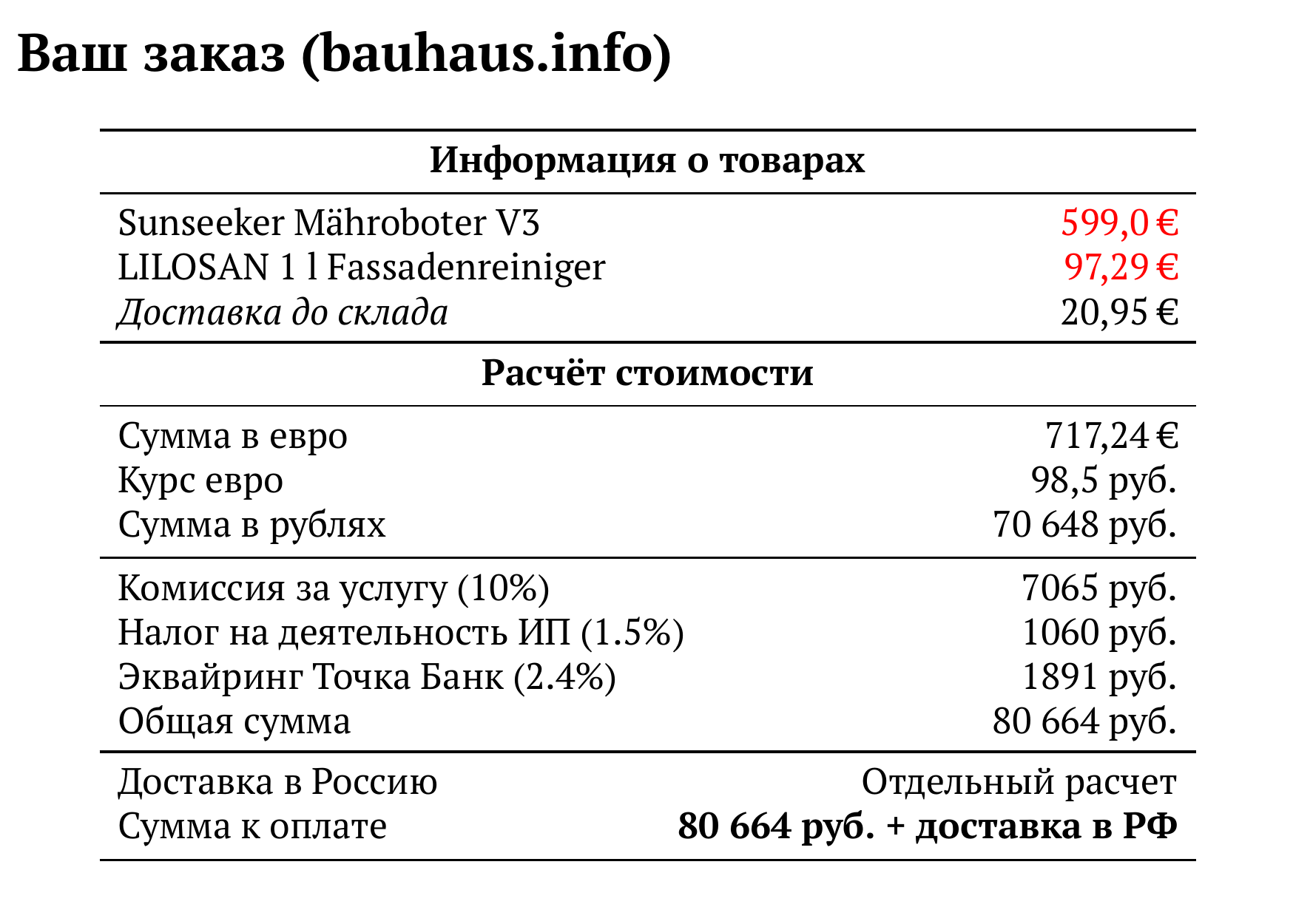 Расчет для bauhaus.info — 80 664 руб.