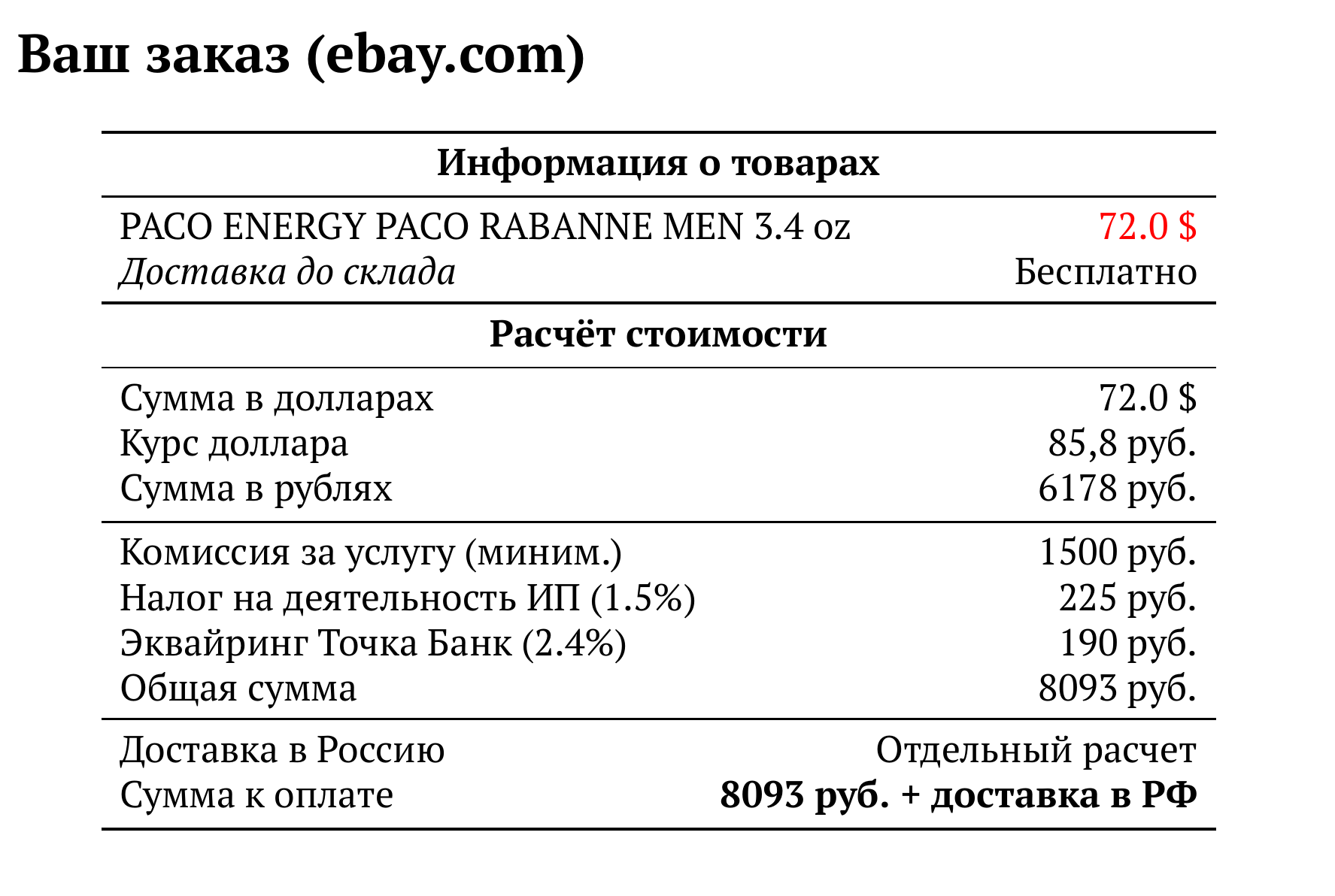 Расчет для ebay.com — 8093 руб.