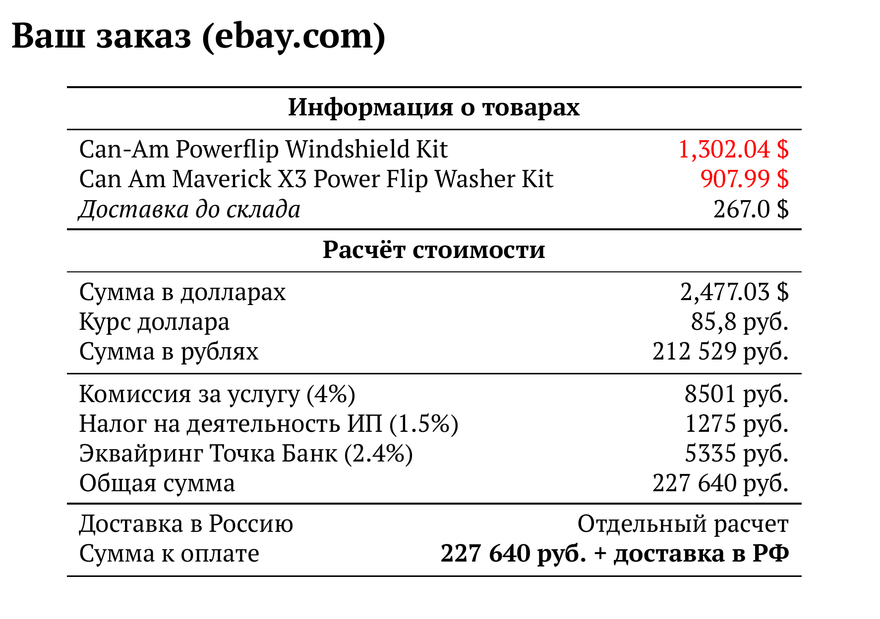 Расчет для ebay.com — 227 640 руб.