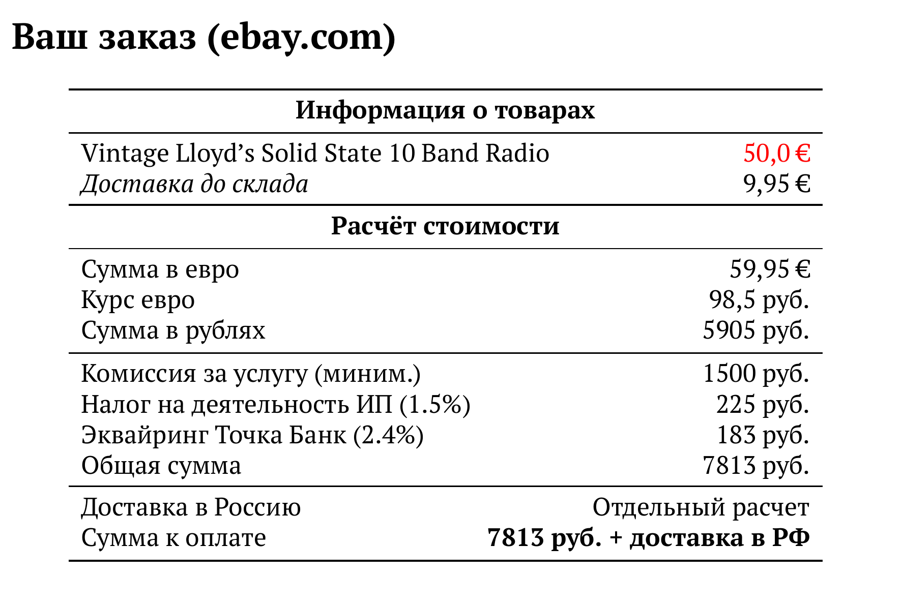 Расчет для ebay.com — 7813 руб.