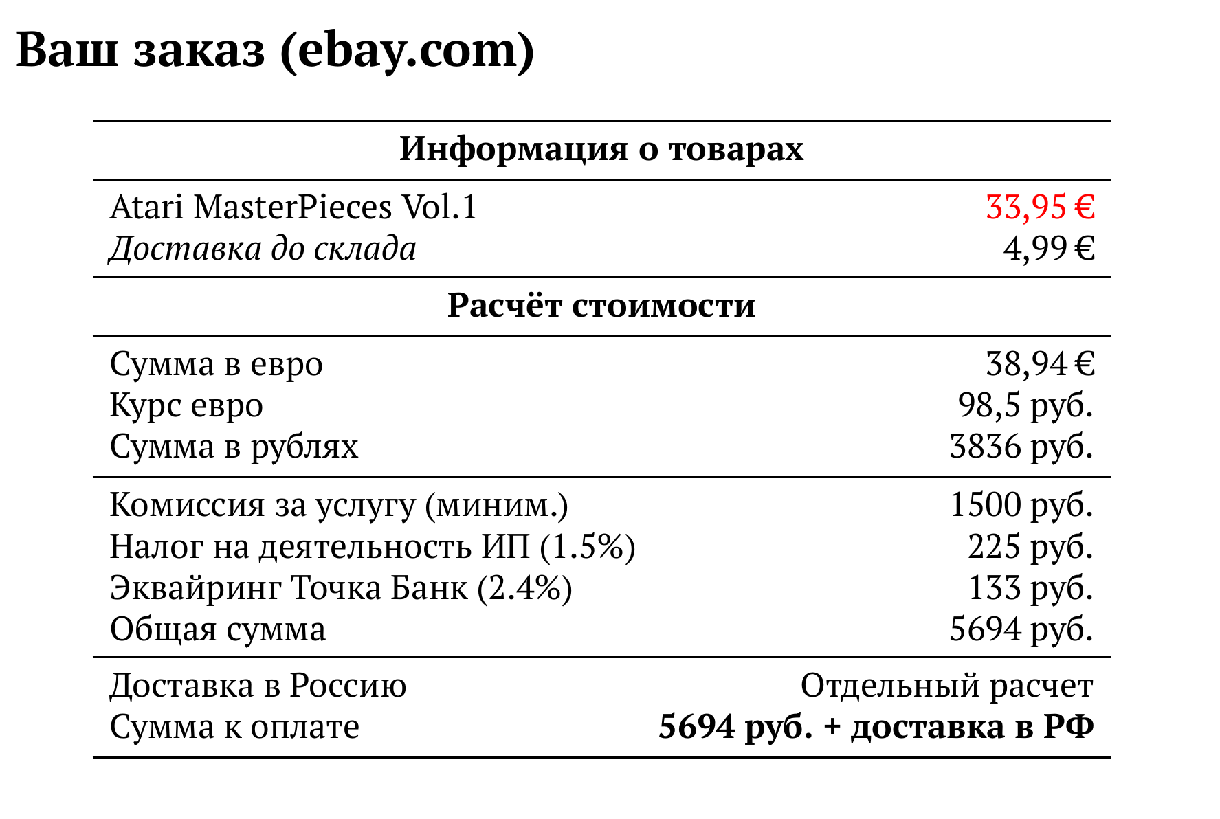 Расчет для ebay.com — 5694 руб.