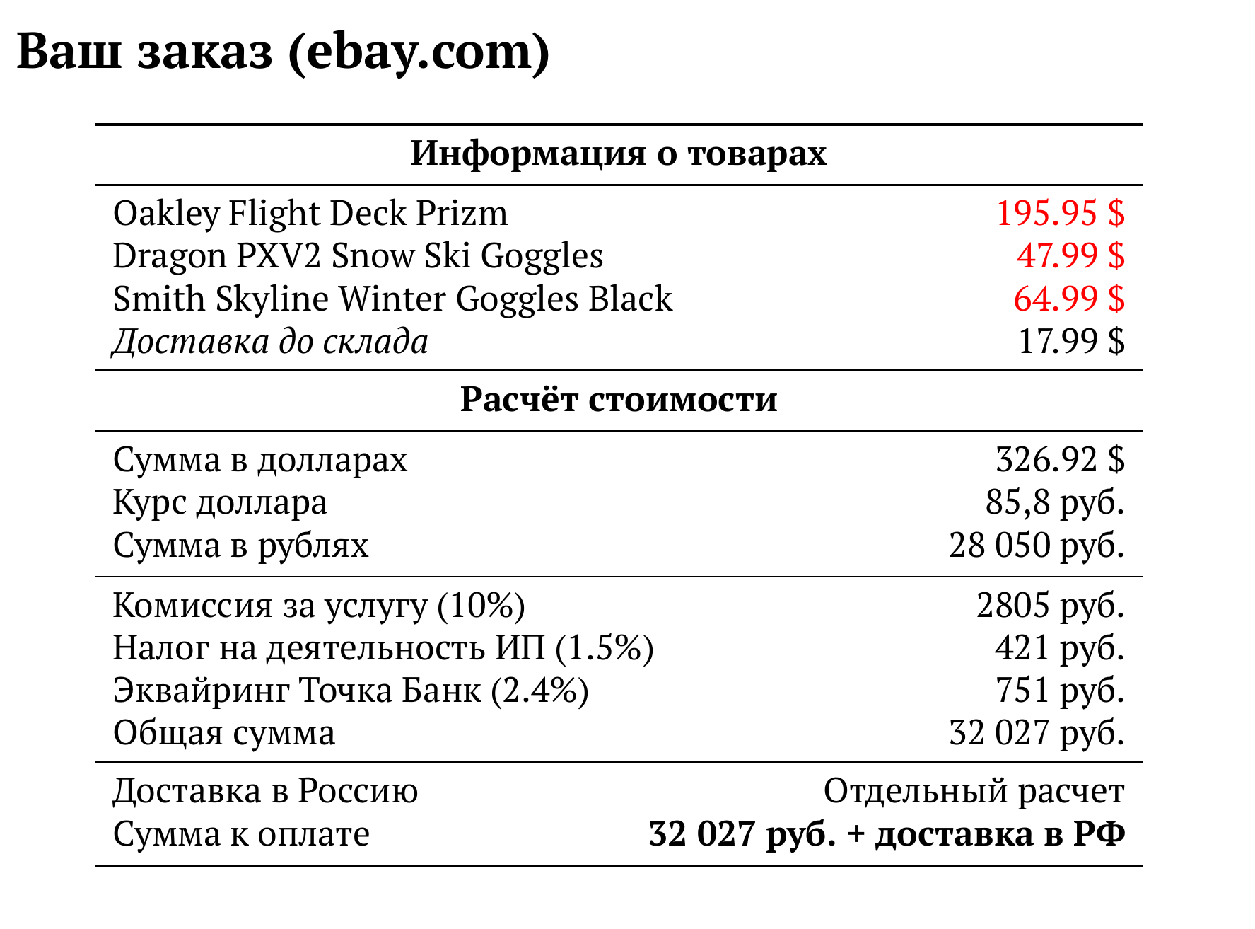 Расчет для ebay.com — 32 027 руб.