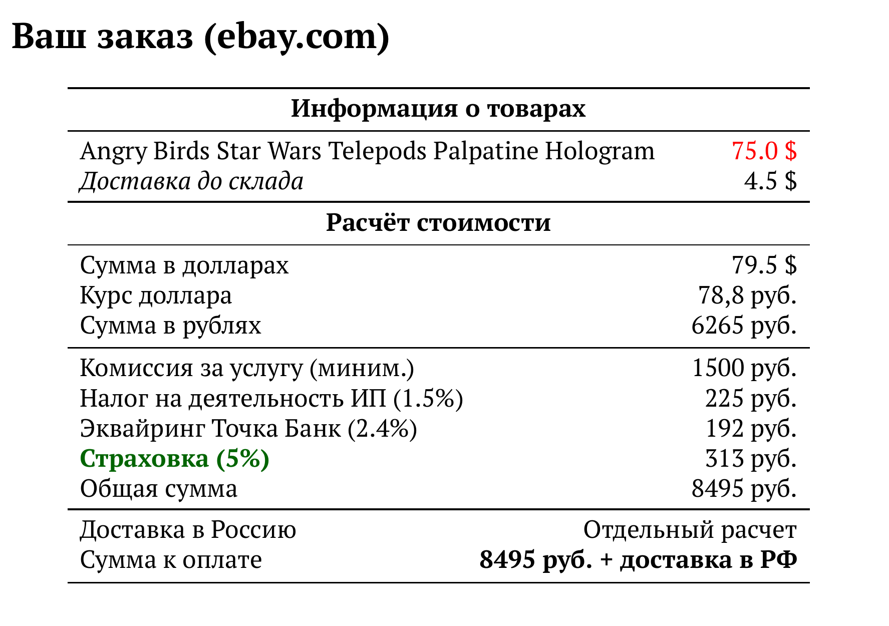 Расчет для ebay.com — 8495 руб.