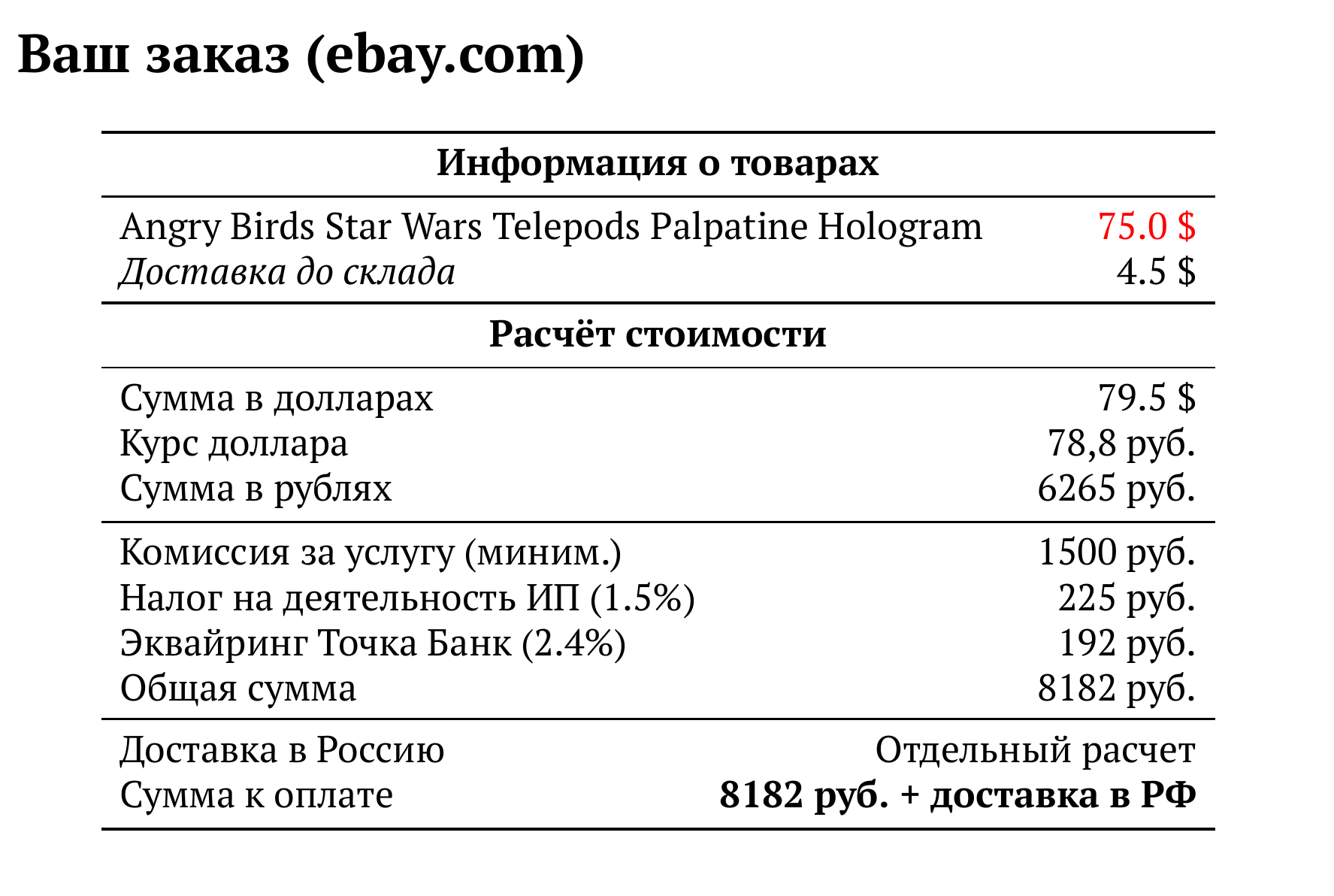 Расчет для ebay.com — 8182 руб.