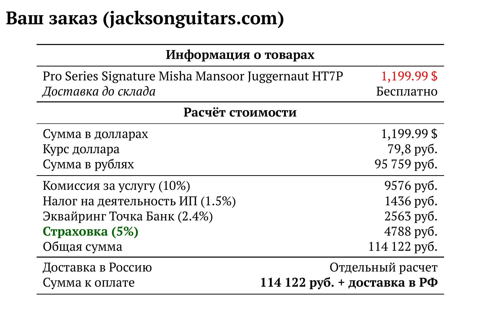 Расчет для jacksonguitars.com — 114 122 руб.