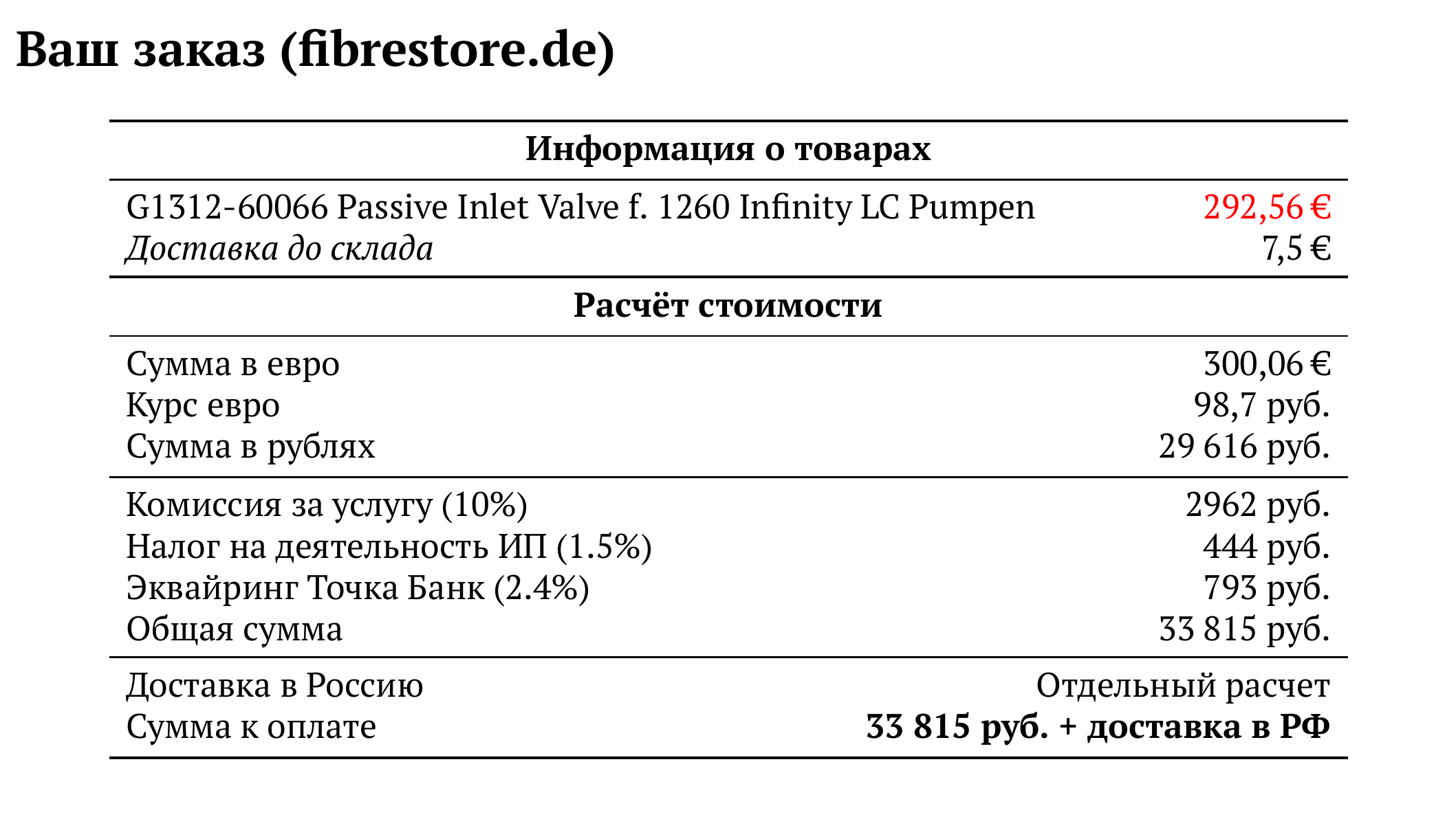 Расчет для fibrestore.de — 33 815 руб.