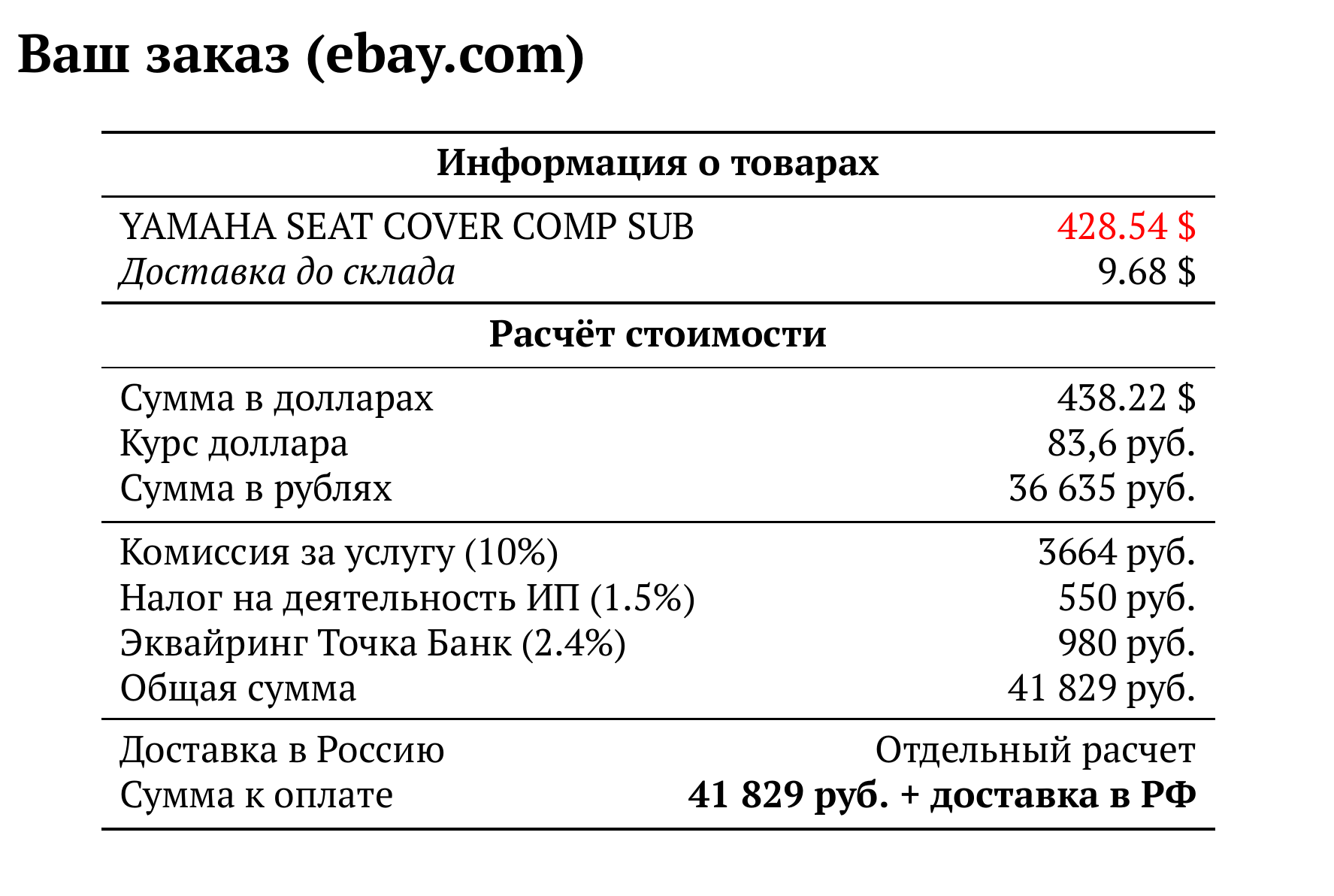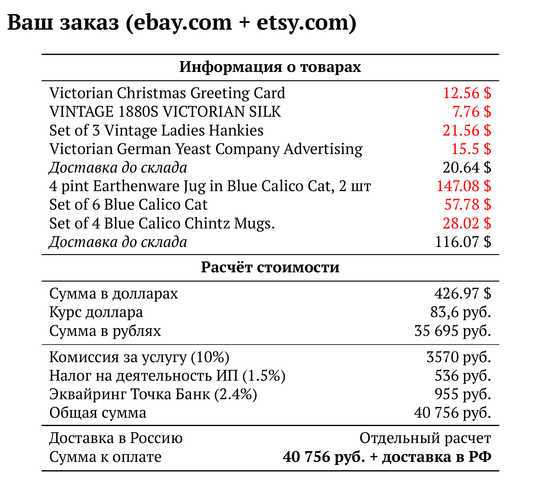 Расчет для ebay.com + etsy.com — 40 756 руб.