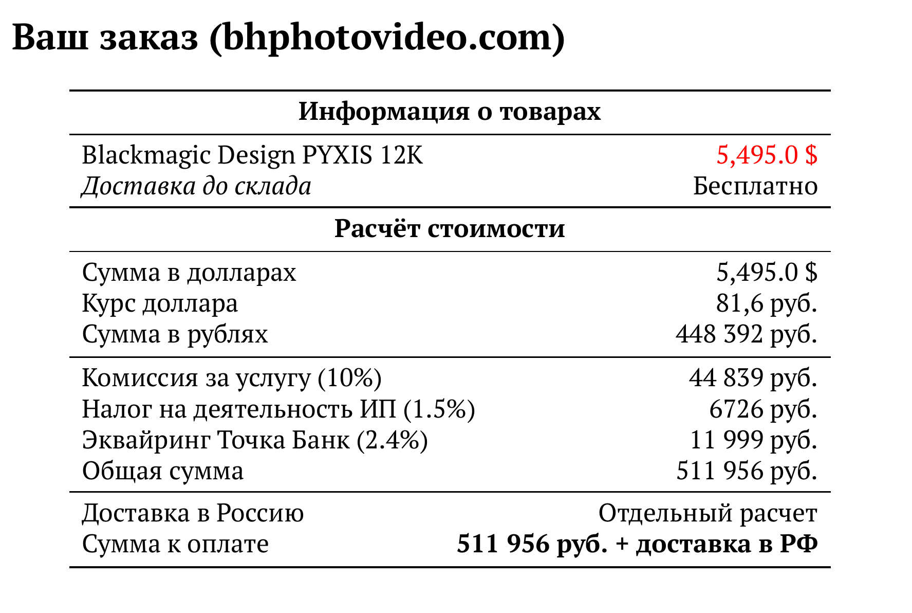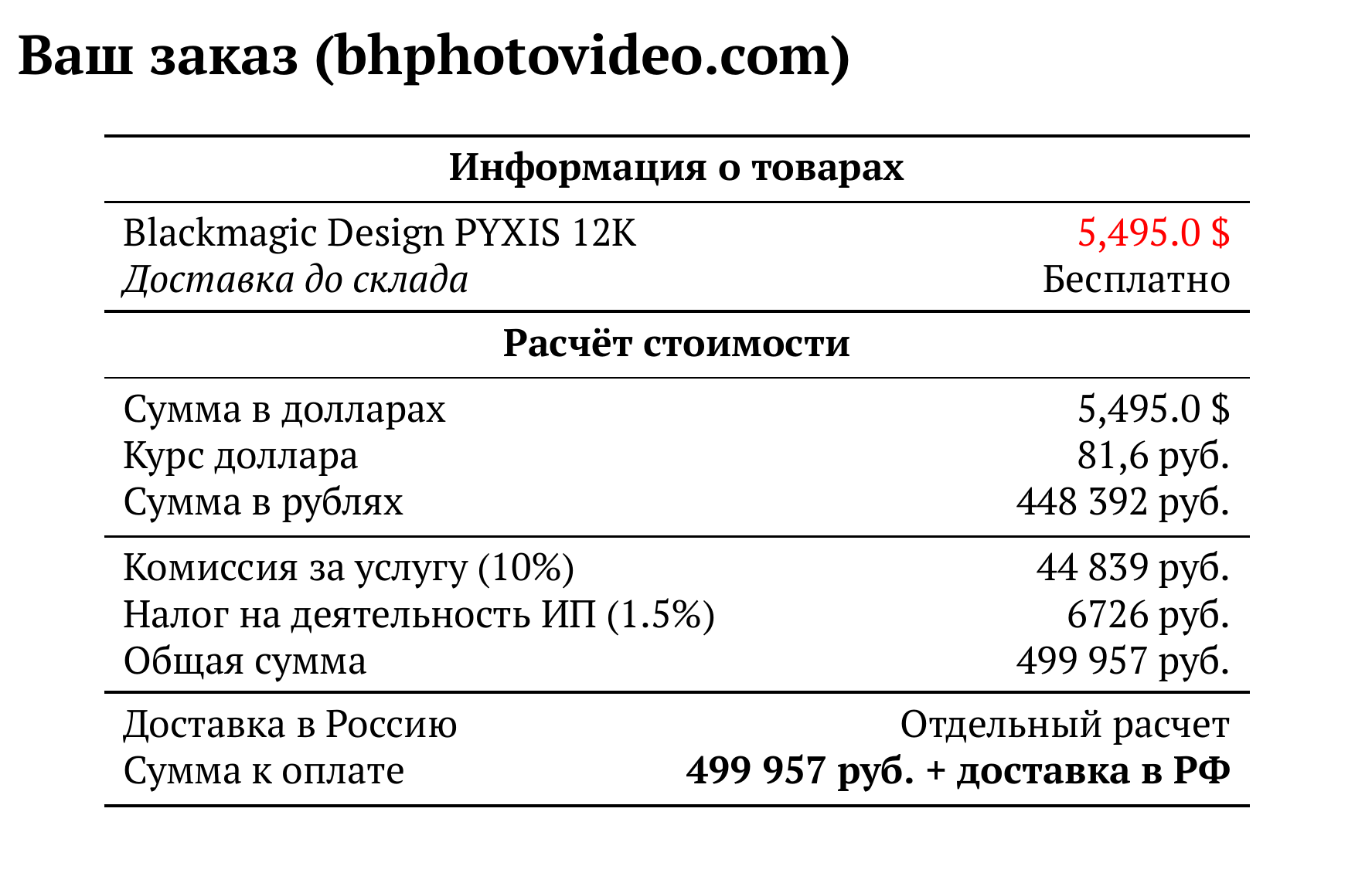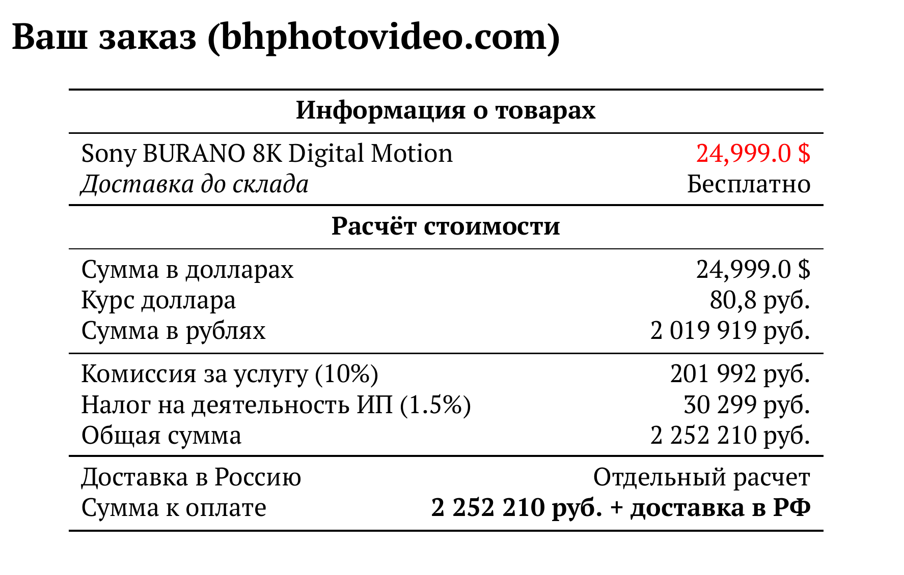 Расчет для bhphotovideo.com — 2 252 210 руб.