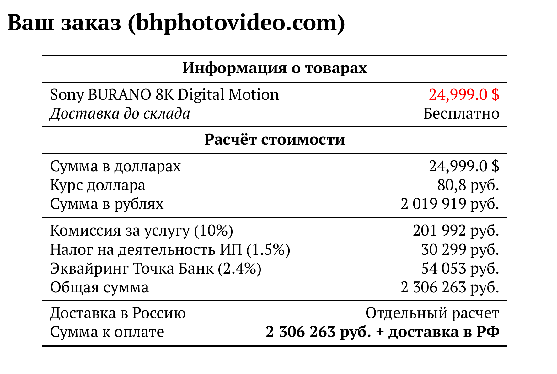 Расчет для bhphotovideo.com — 2 252 210 руб.