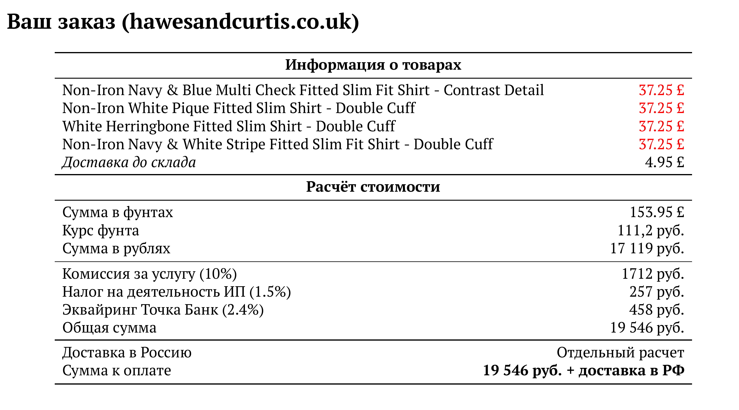 Расчет для hawesandcurtis.co.uk — 19 546 руб.