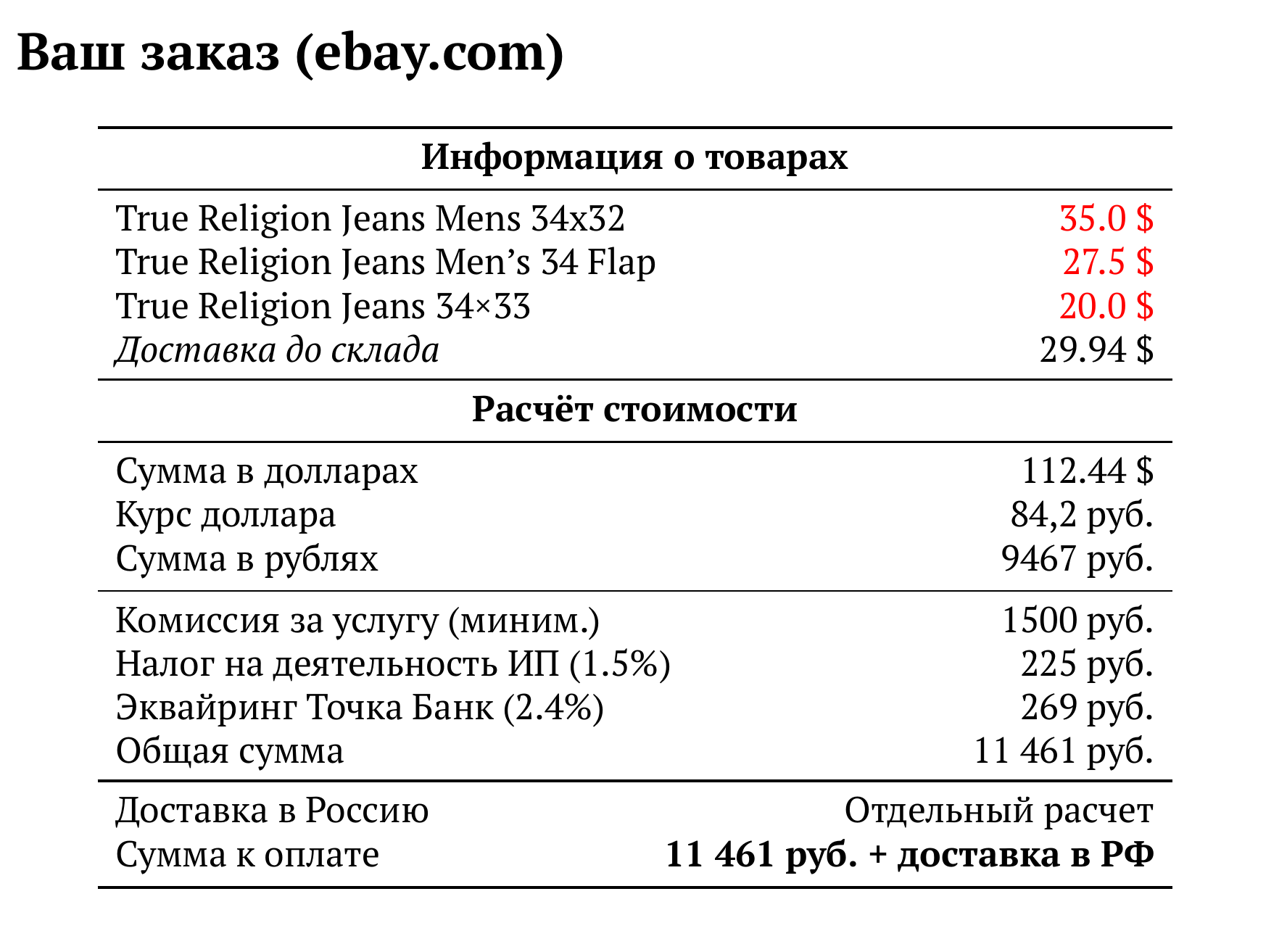Расчет для ebay.com — 11 461 руб.