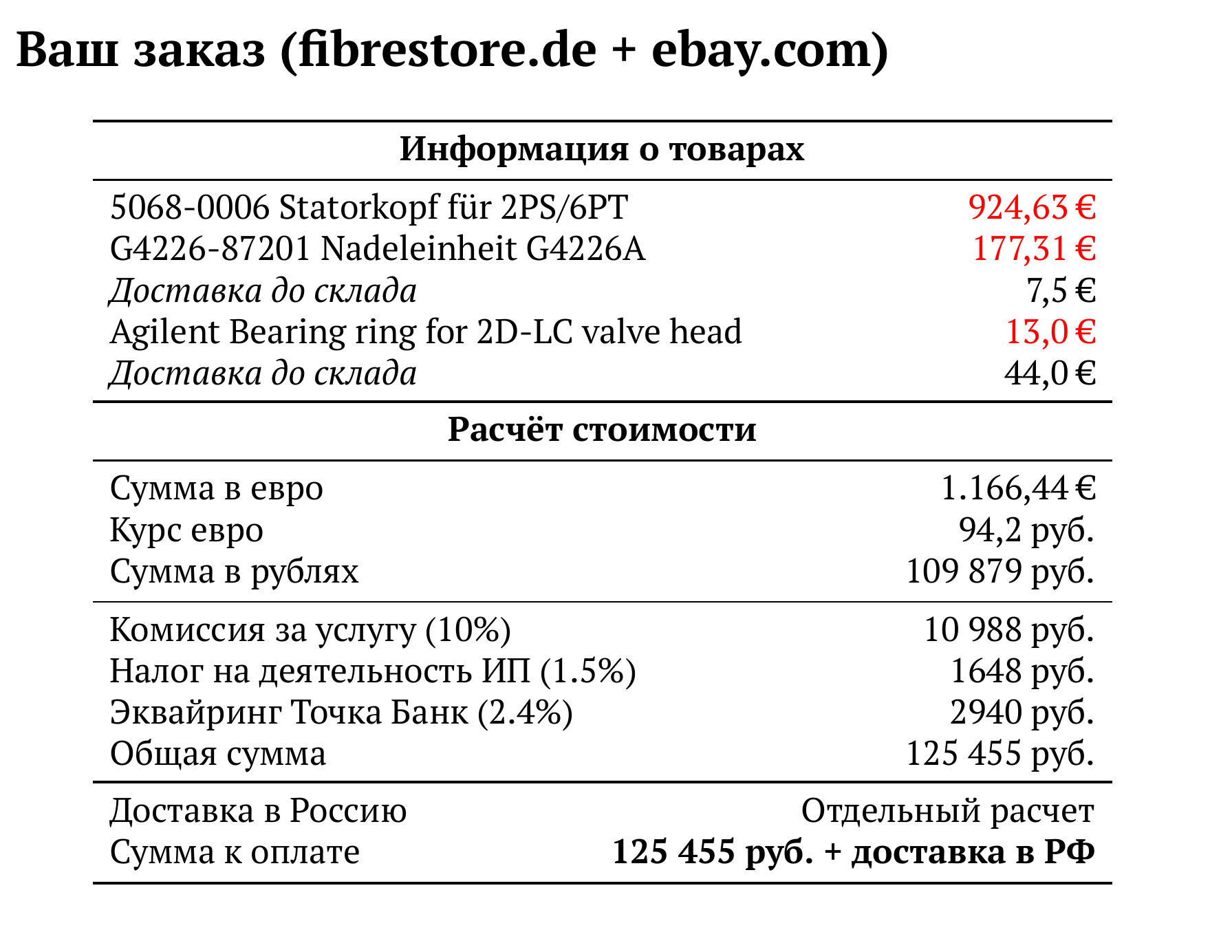Расчет для fibrestore.de + ebay.com — 125 455 руб.