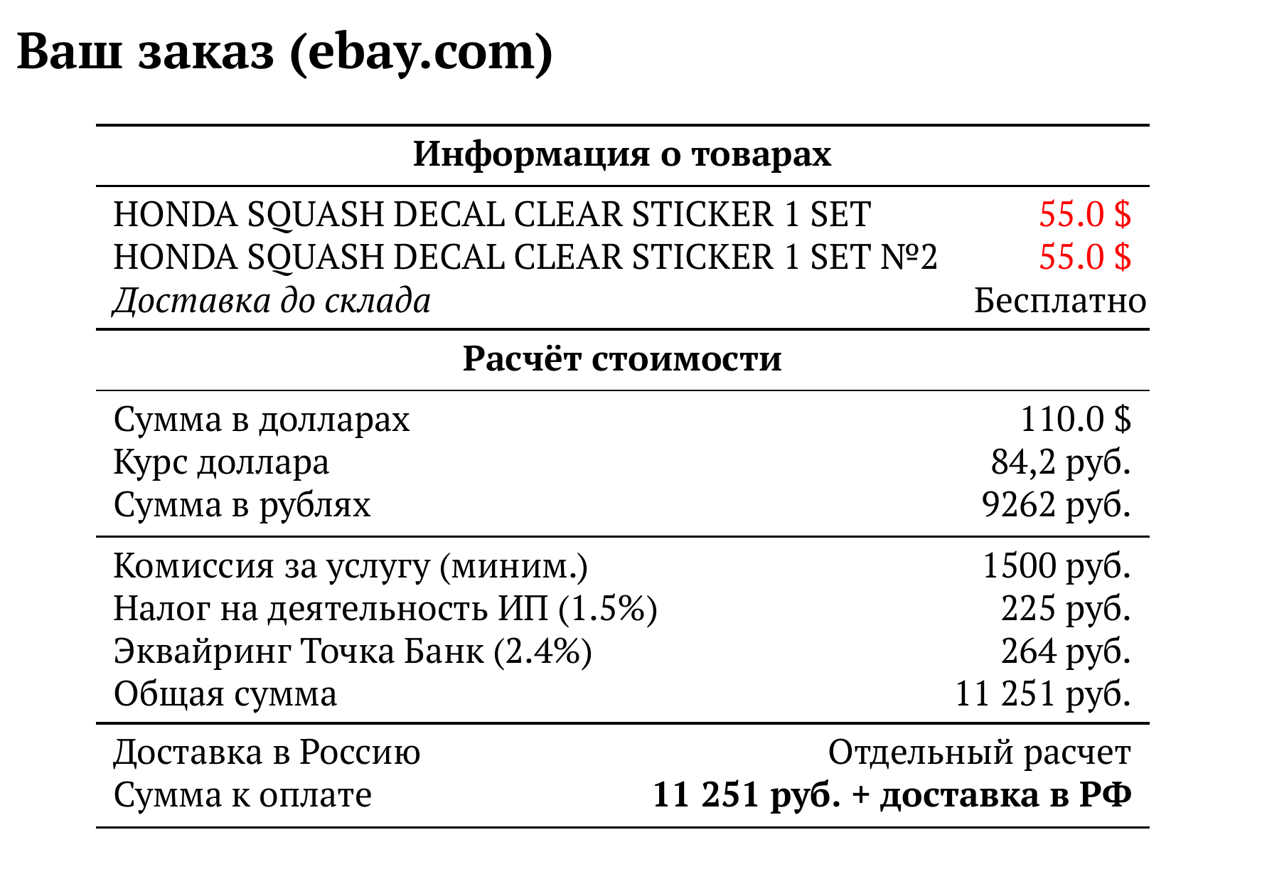 Расчет для ebay.com — 11 251 руб.