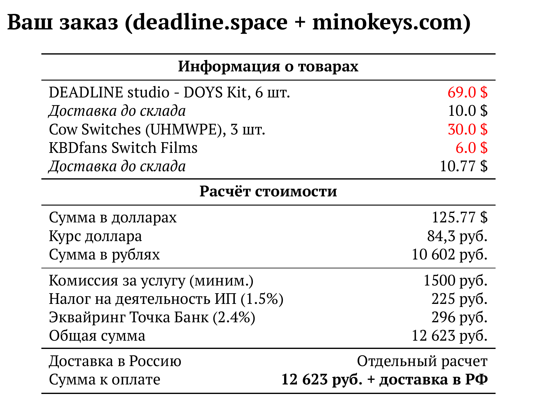 Расчет для deadline.space + minokeys.com — 12 623 руб.