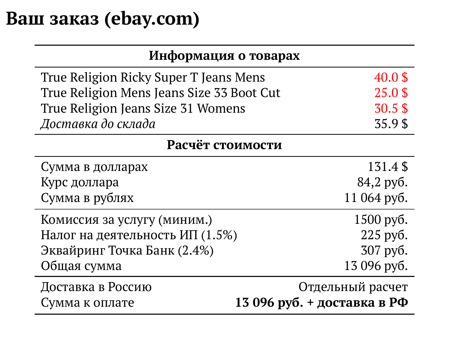 Расчет для ebay.com — 13 096 руб.