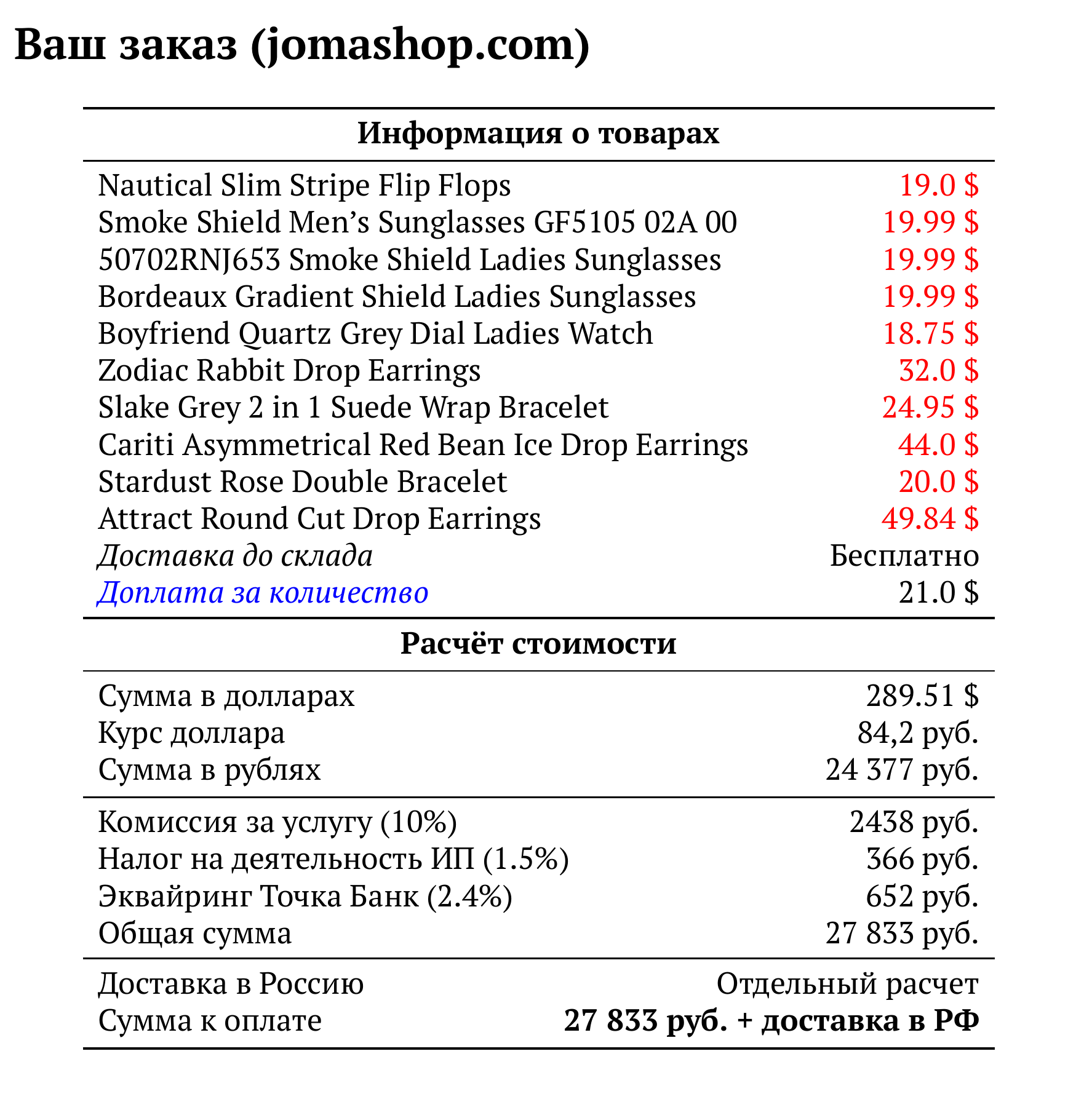 Расчет для jomashop.com — 27 833 руб.