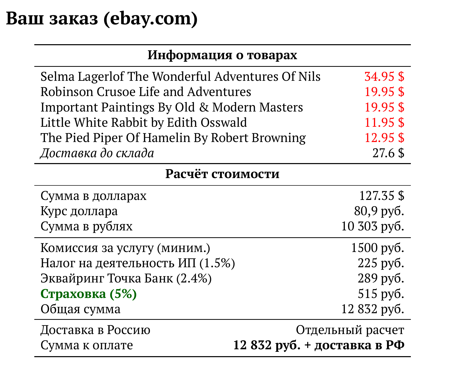 Расчет для ebay.com — 12 832 руб.