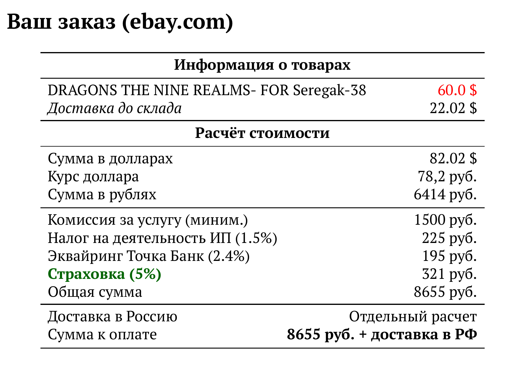 Расчет для ebay.com — 8655 руб.