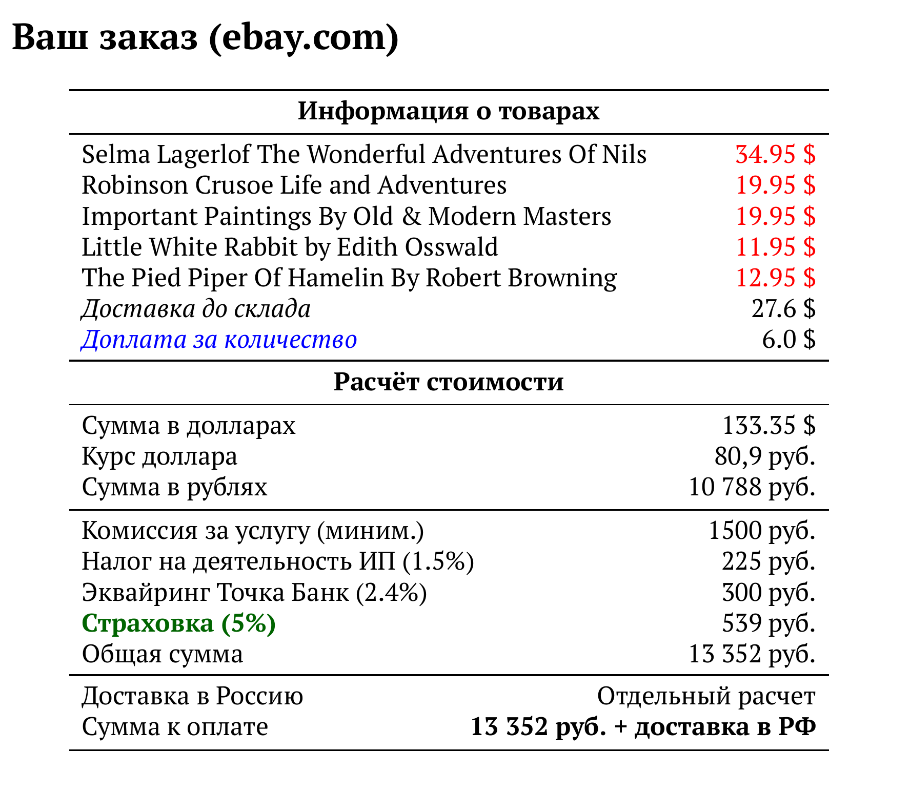 Расчет для ebay.com — 13 352 руб.