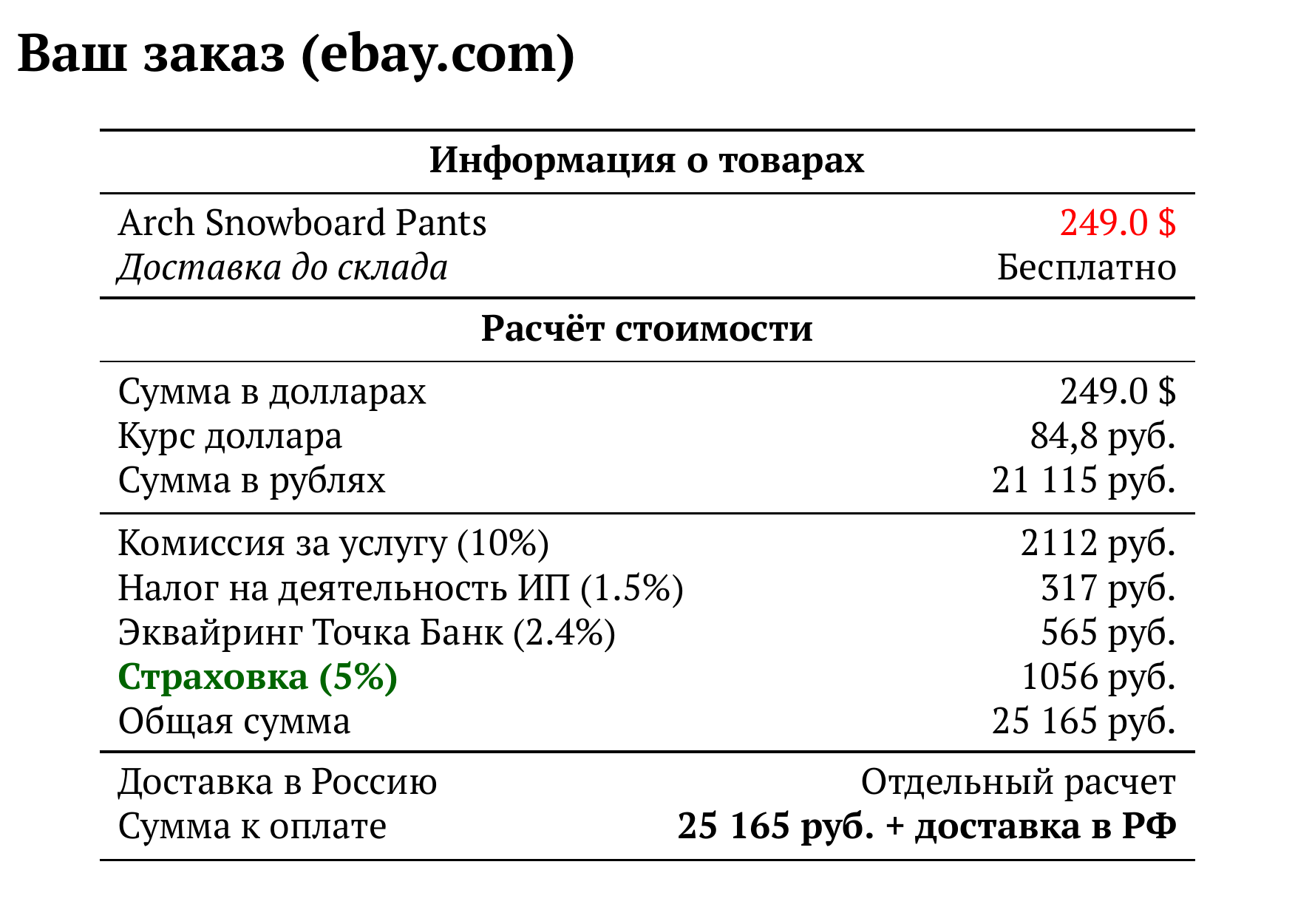 Расчет для ebay.com — 25 165 руб.