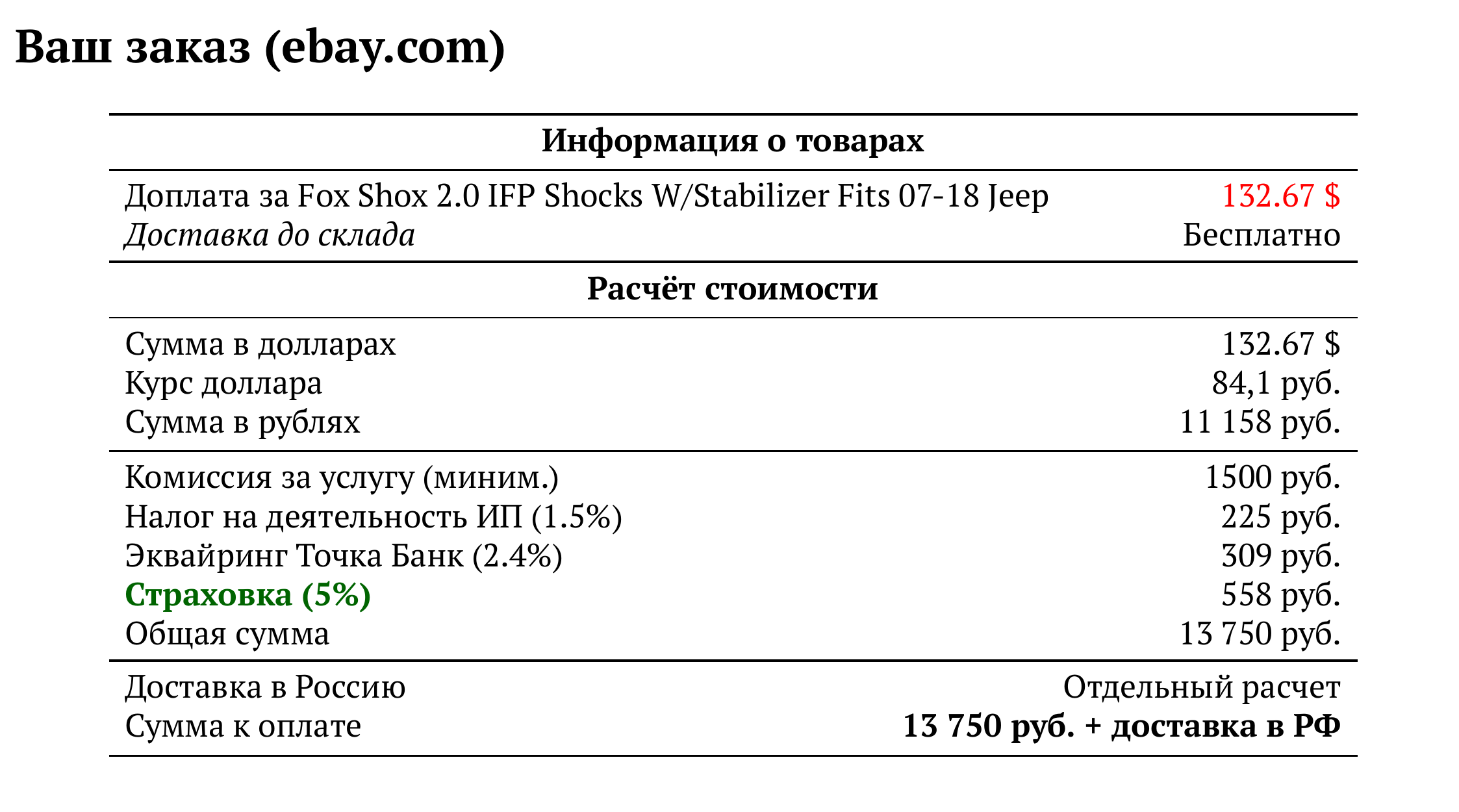 Расчет для ebay.com — 13 750 руб.