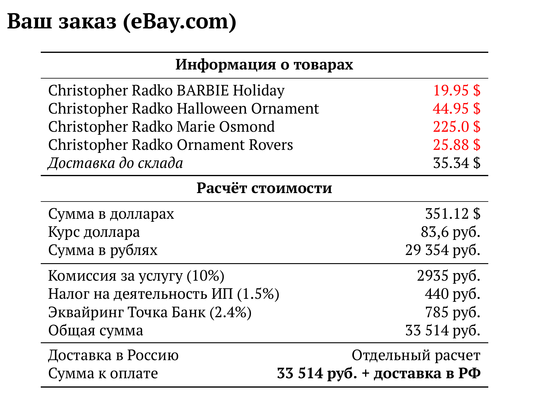 Расчет для eBay.com — 33 514 руб.