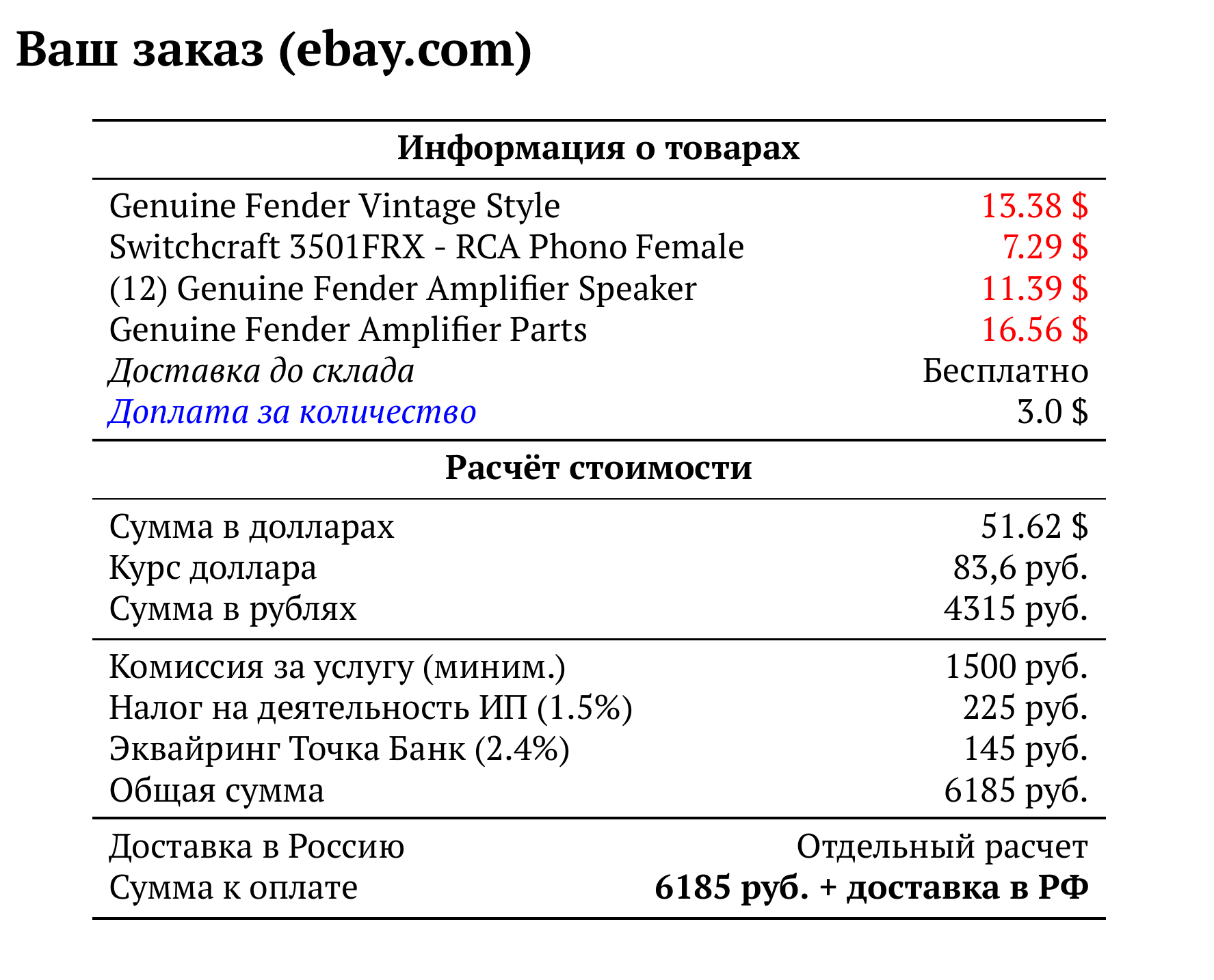 Расчет для ebay.com — 6185 руб.