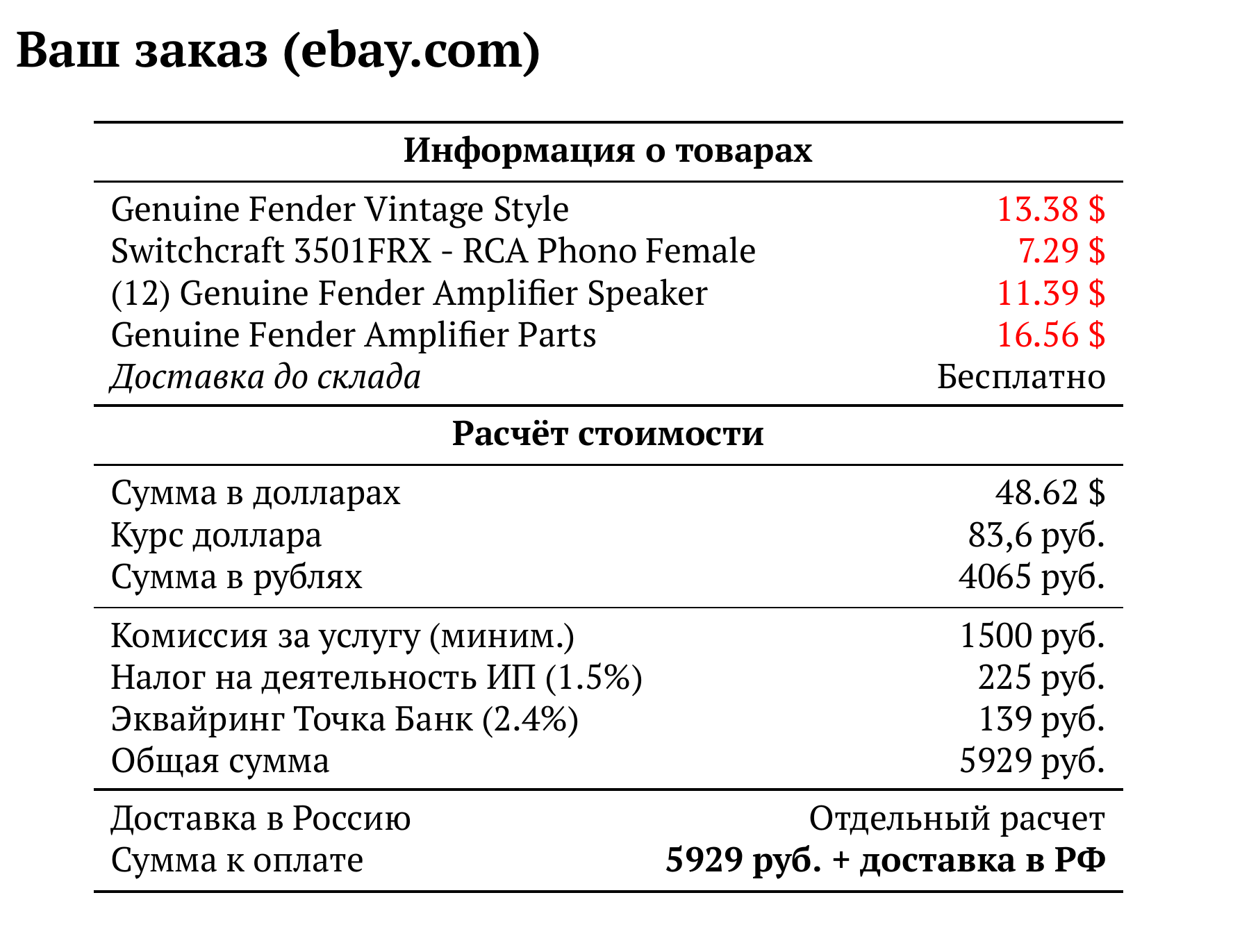 Расчет для ebay.com — 5929 руб.