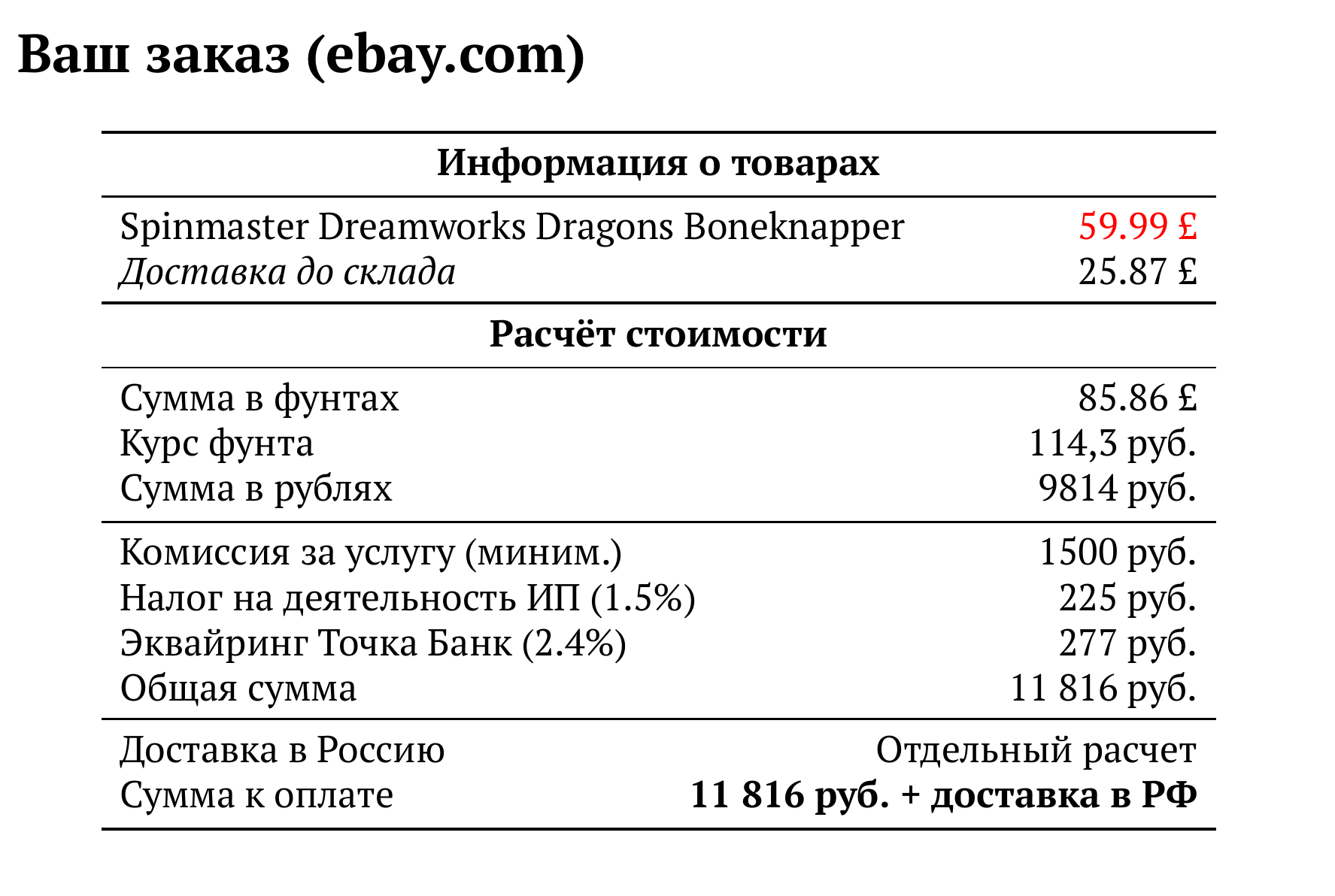 Расчет для ebay.com — 11 816 руб.