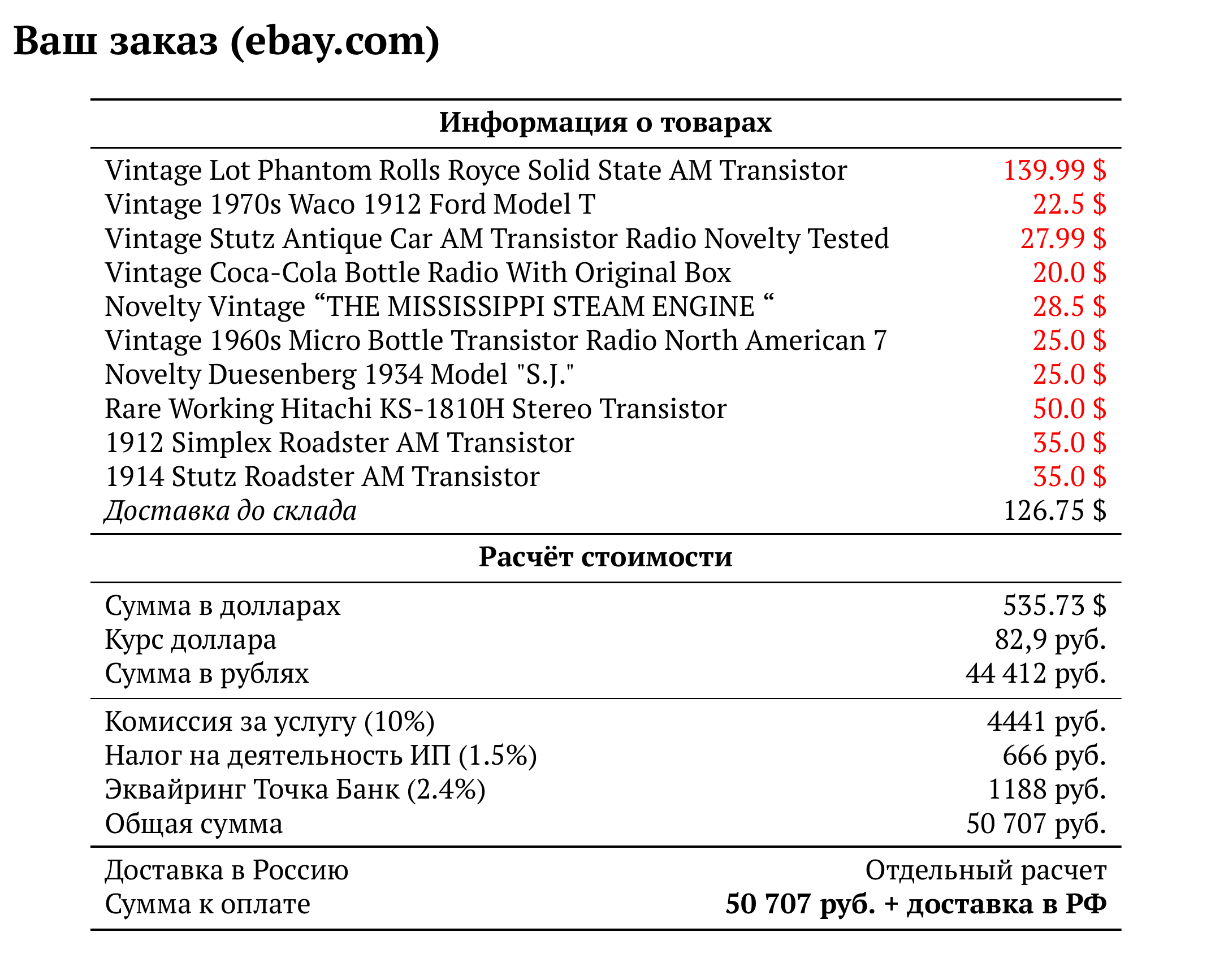 Расчет для ebay.com — 50 707 руб.
