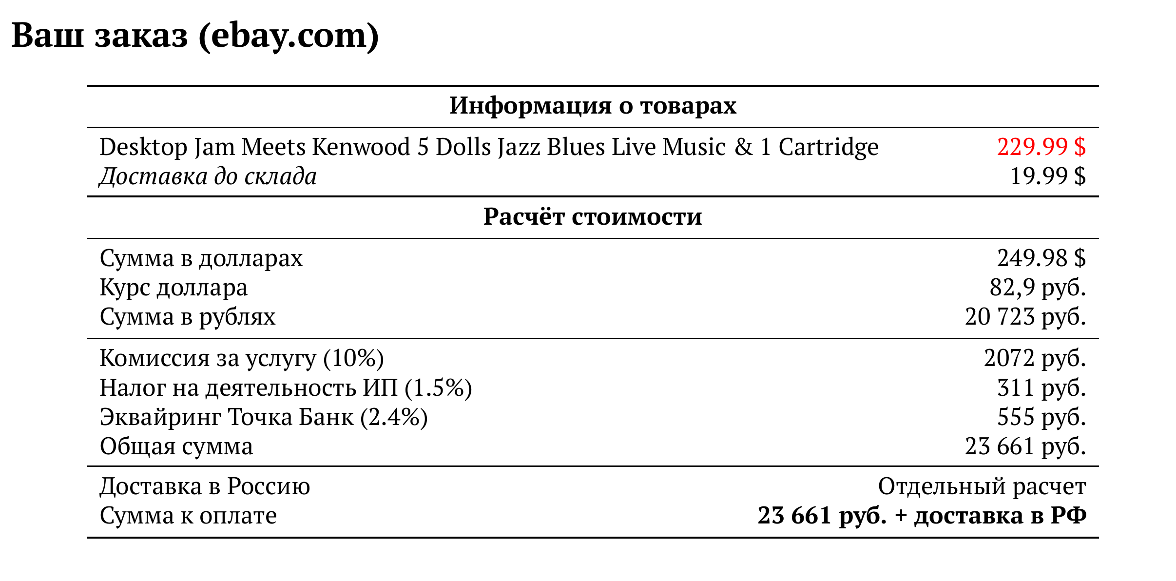 Расчет для ebay.com — 23 661 руб.