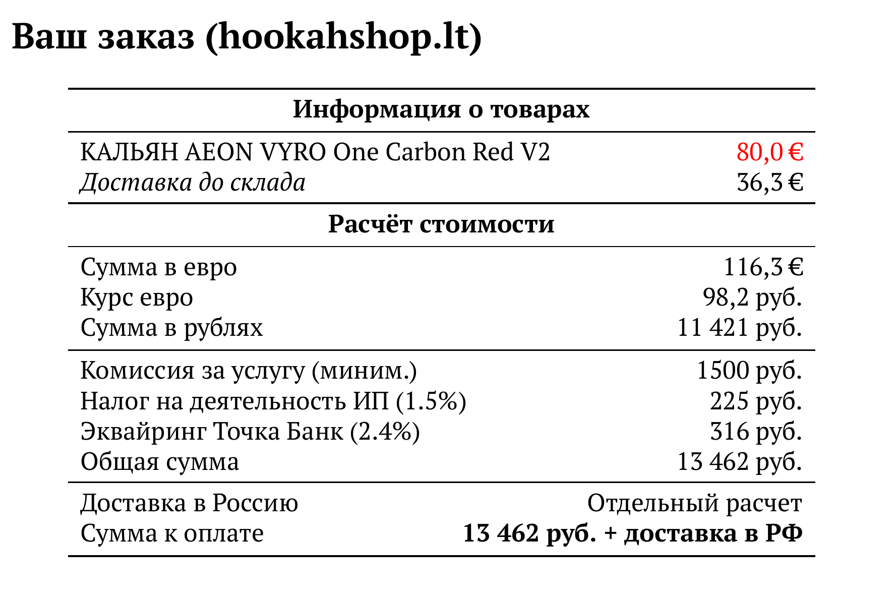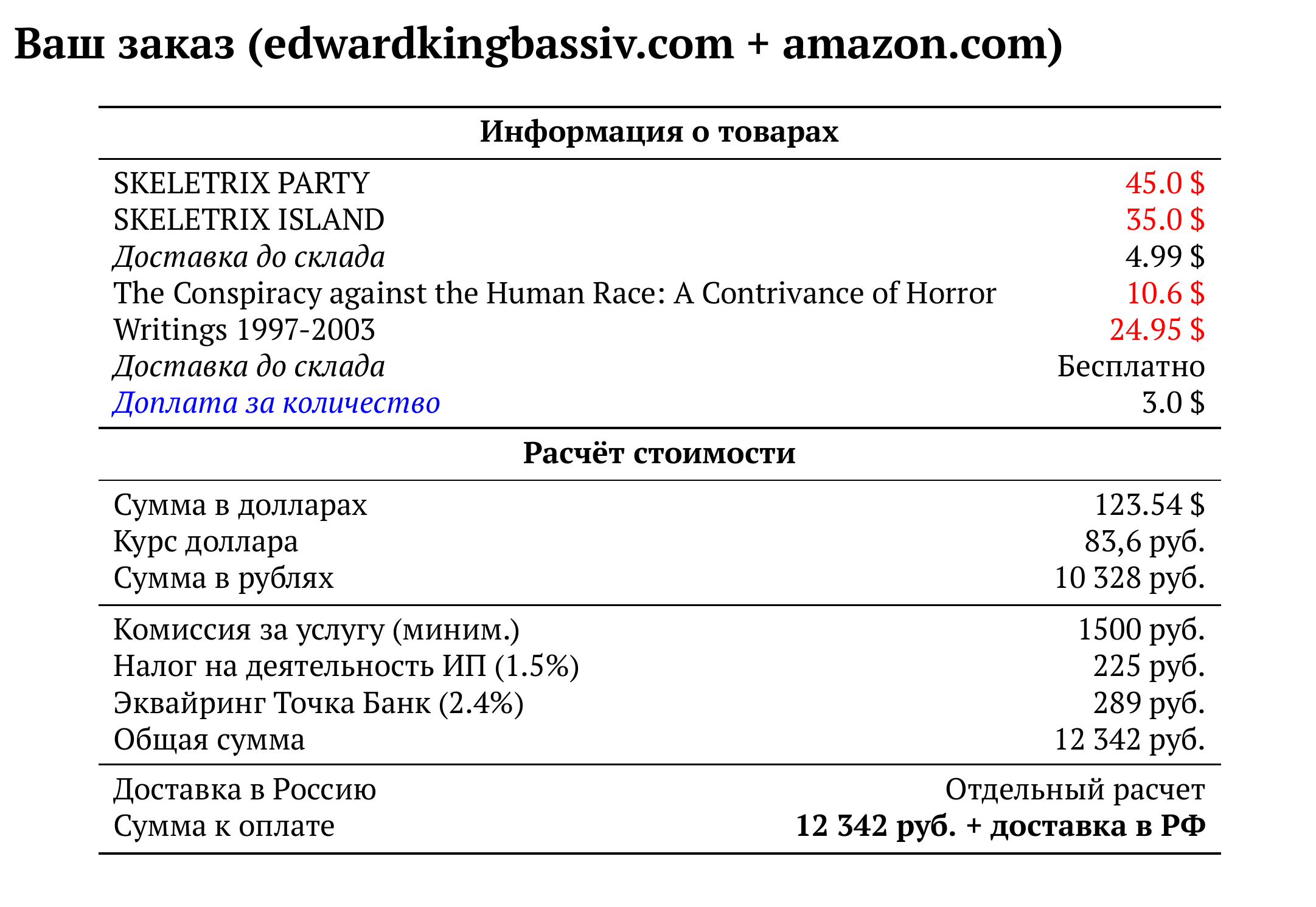 Расчет для edwardkingbassiv.com + amazon.com — 12 342 руб.