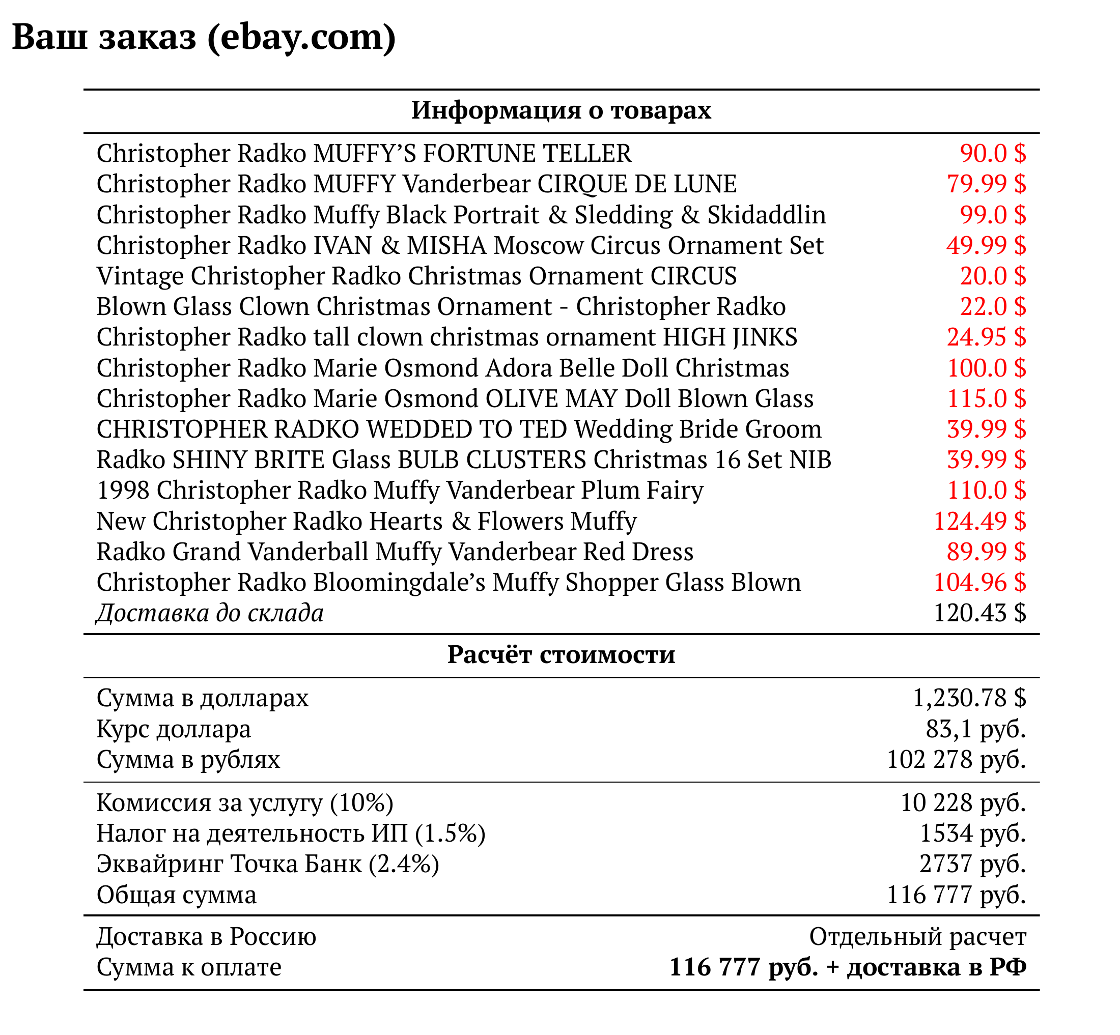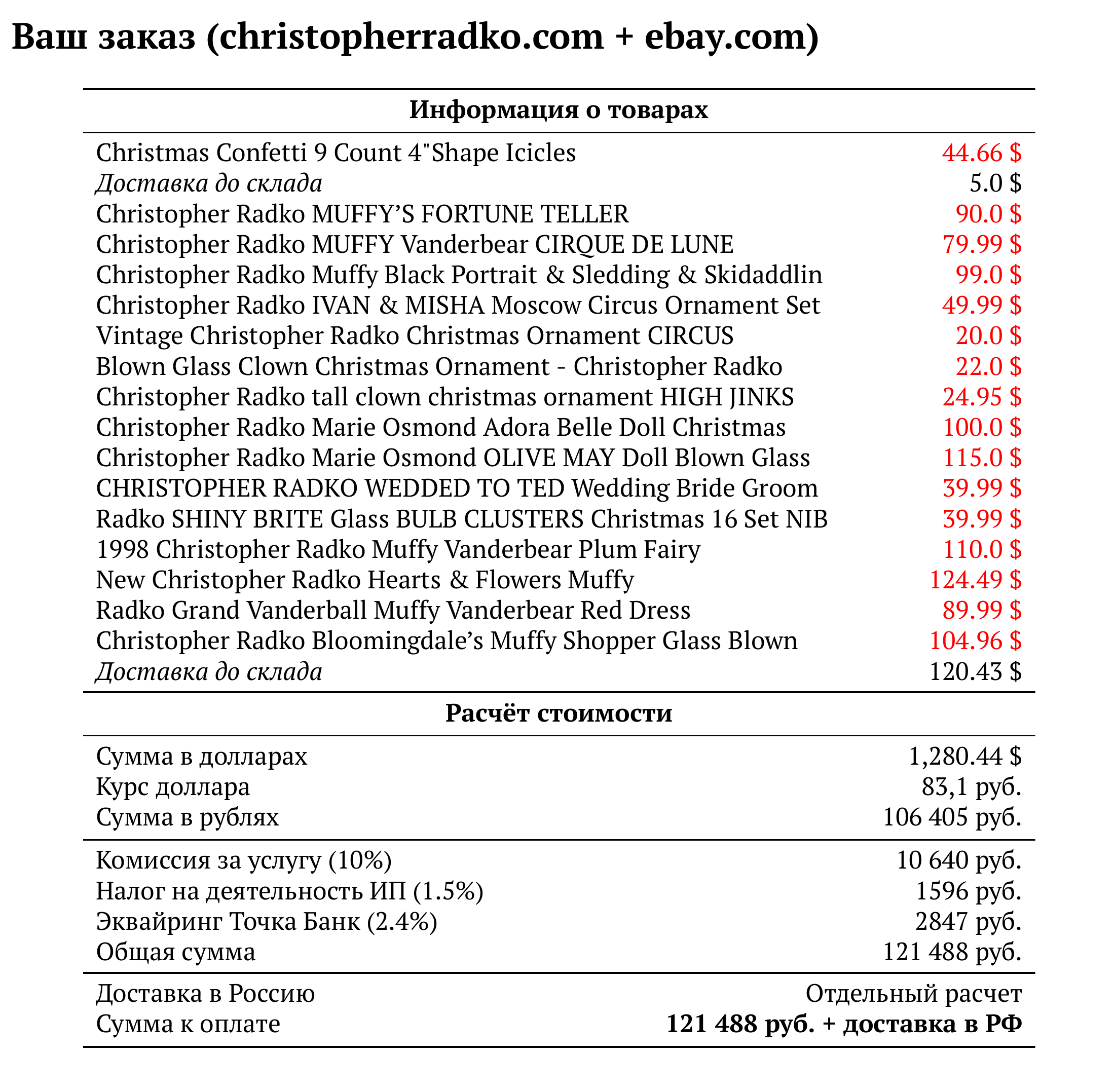 Расчет для christopherradko.com + ebay.com — 121 488 руб.