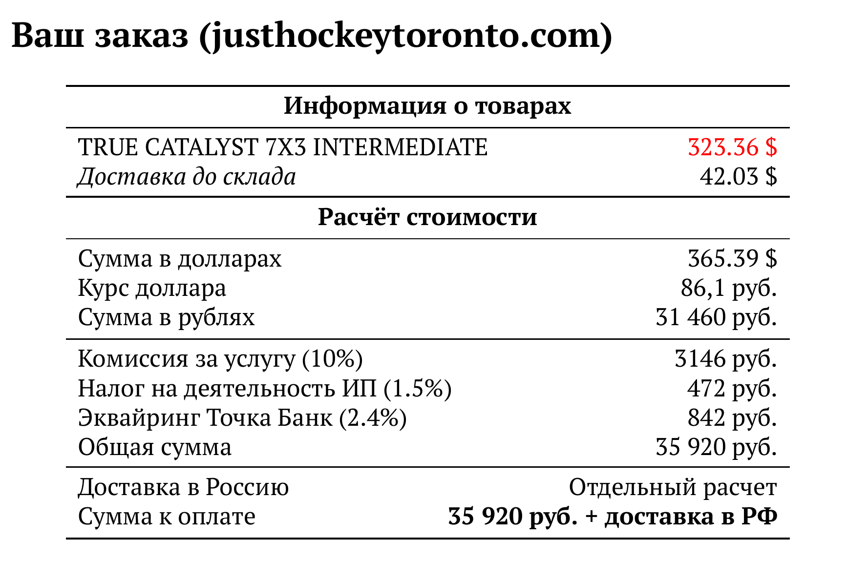 Расчет для justhockeytoronto.com — 35 920 руб.