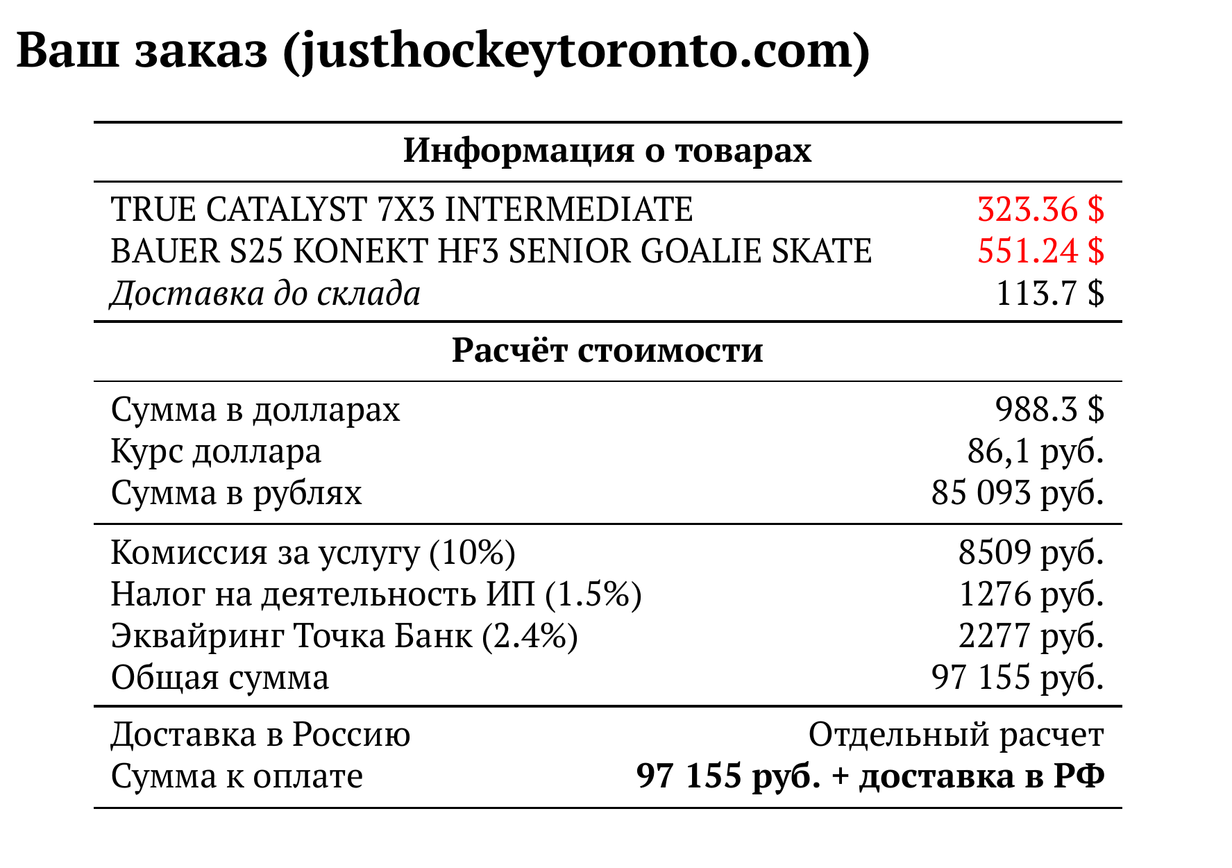Расчет для justhockeytoronto.com — 97 155 руб.