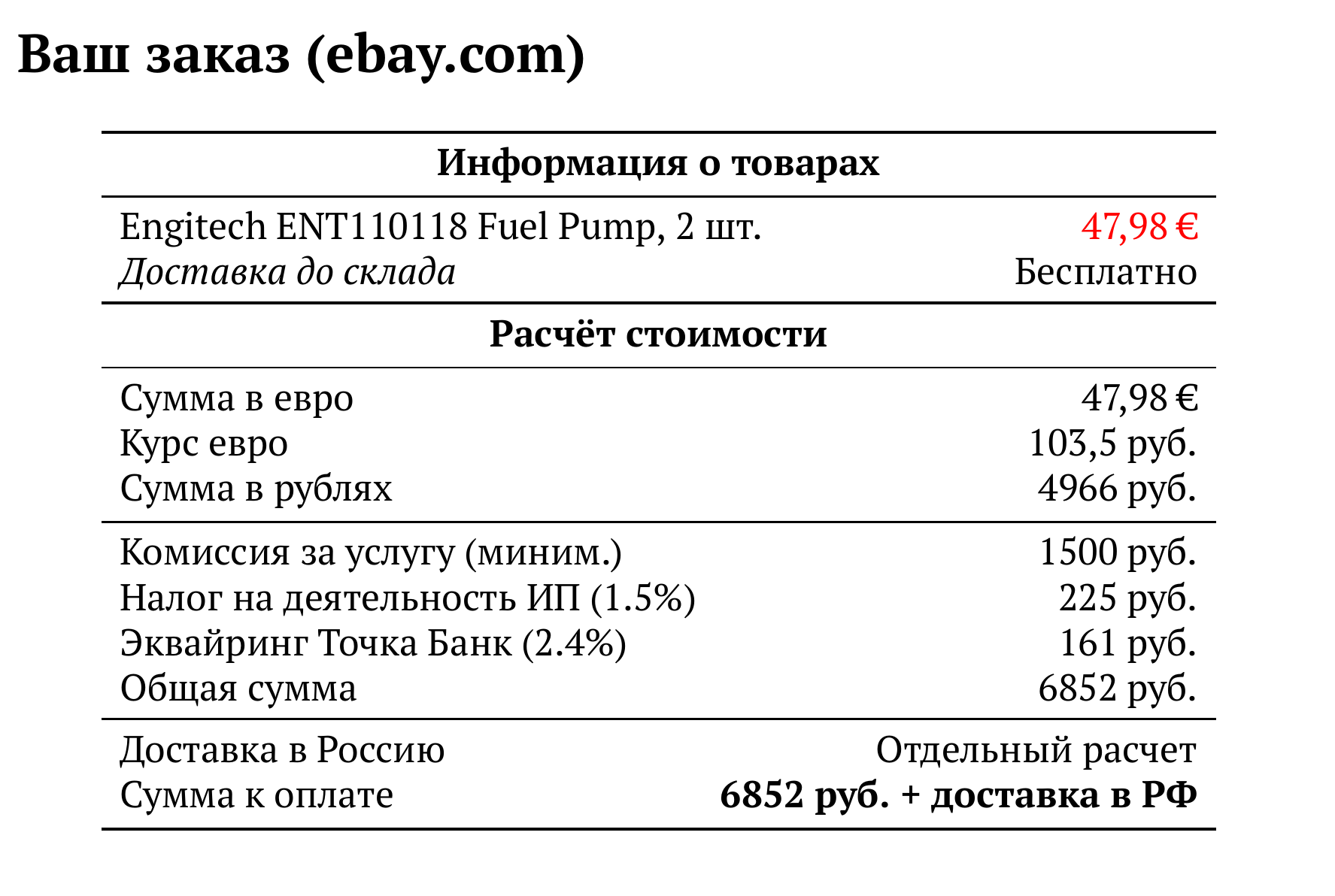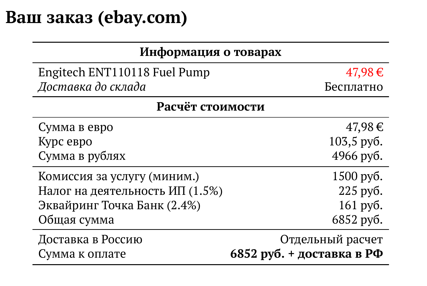 Расчет для ebay.com — 6852 руб.