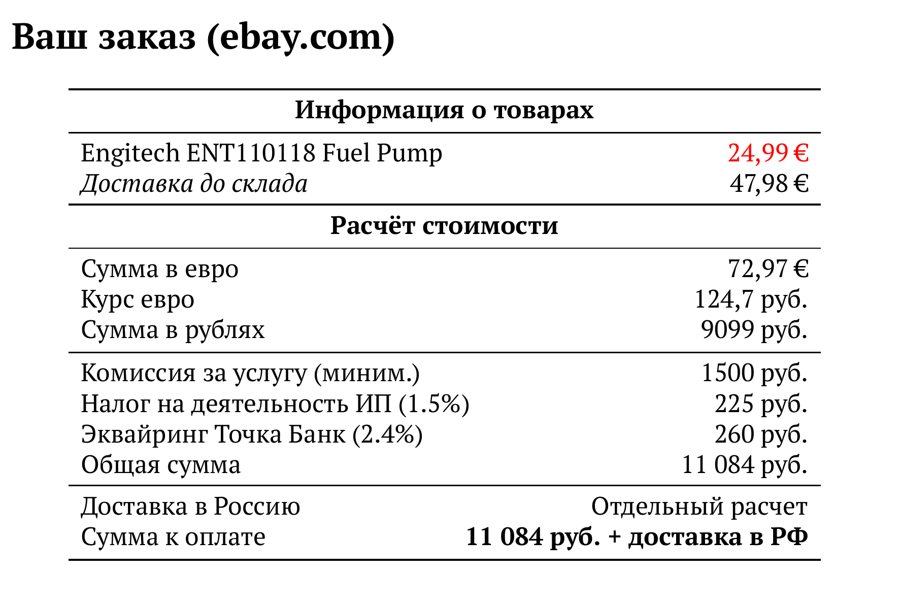 Расчет для ebay.com — 11 084 руб.
