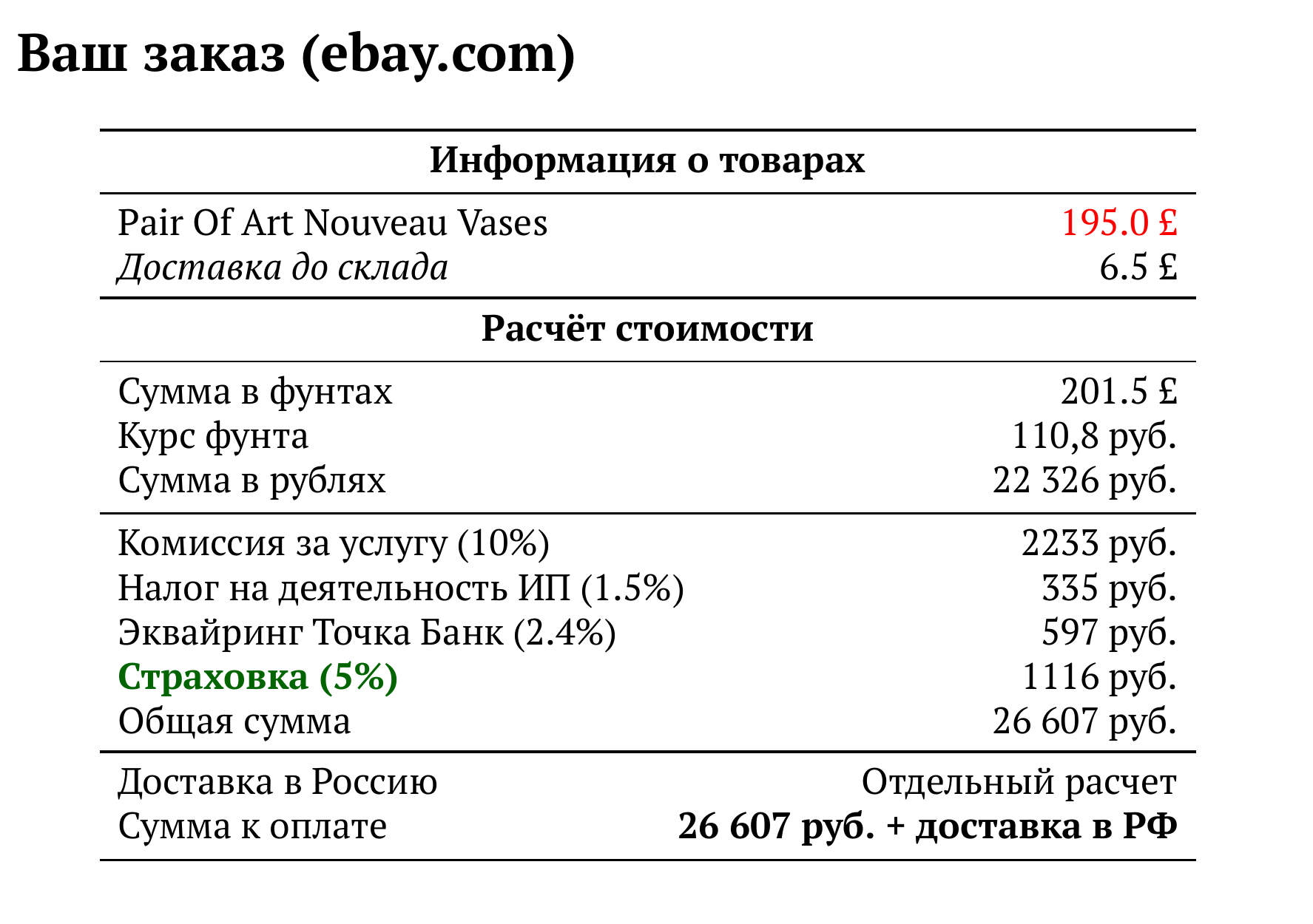 Расчет для ebay.com — 26 607 руб.