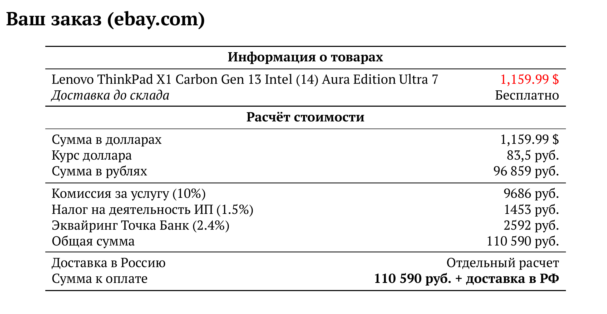 Расчет для Yuri Antsipkin — 39 094 руб.