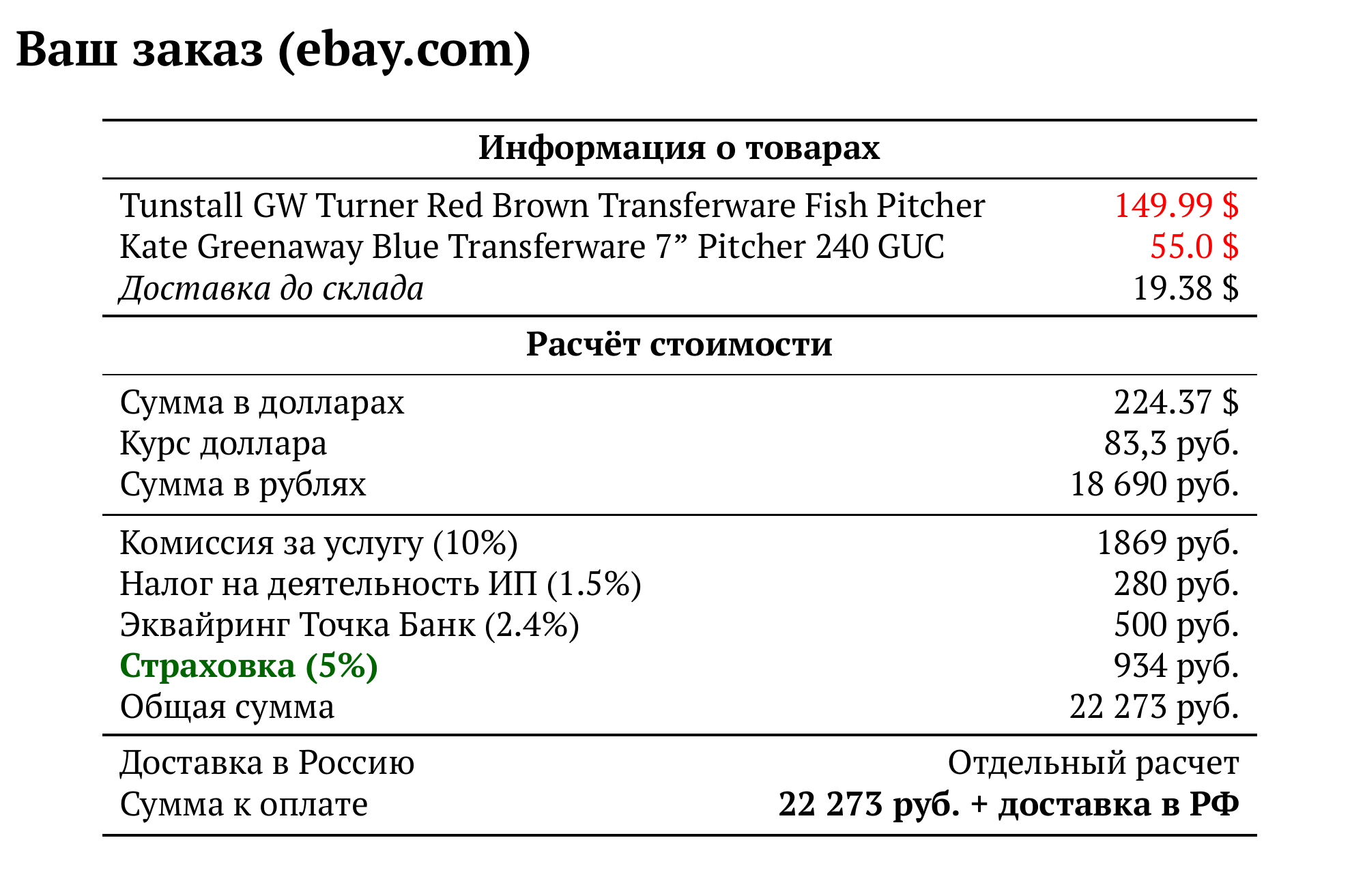 Расчет для ebay.com — 22 273 руб.