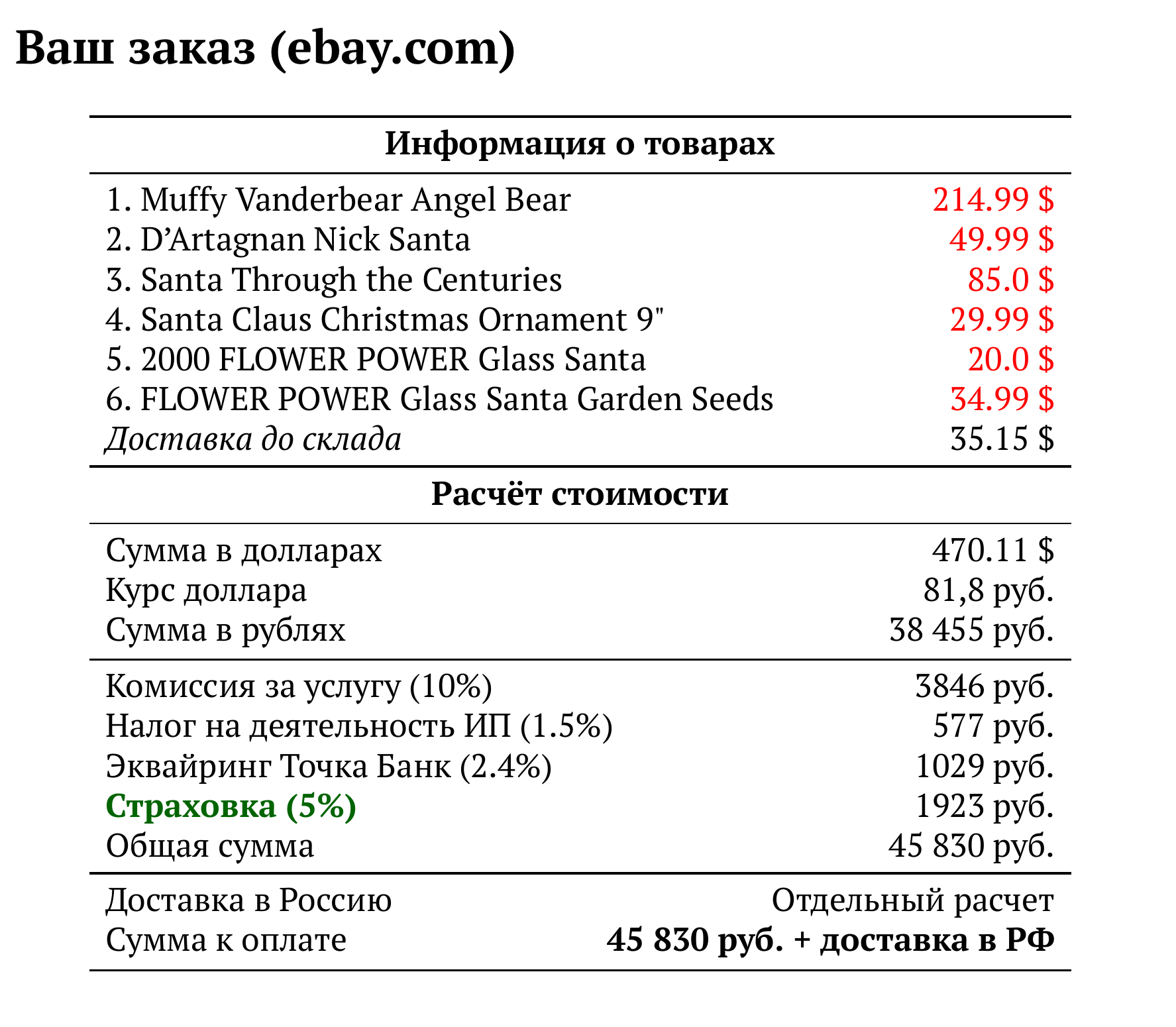 Расчет для ebay.com — 45 830 руб.